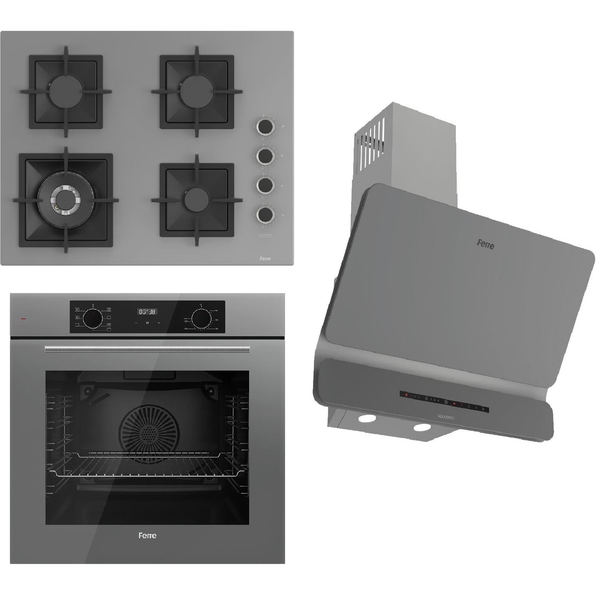 Ferre Flowart-Sılentart Serisi Gri Set (SC408-WFA + QBL63CPR +D082-SA) – Döküm Izgara / 65 cm Ocak