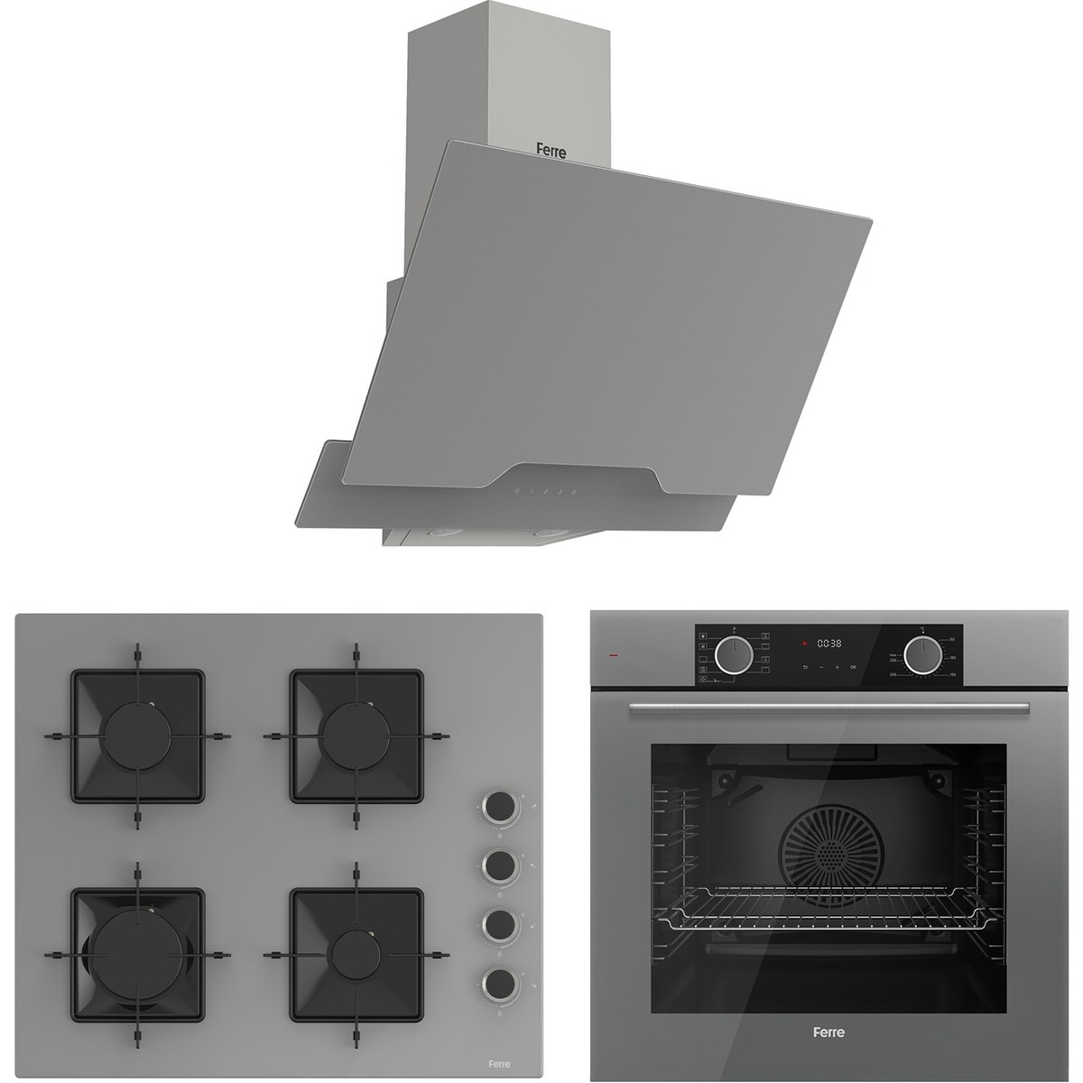 Ferre Fryart Hava Fritözü Fonksiyonlu Gri 3’lü Ankastre Set ( Xe63cpr-SS208-D065 )