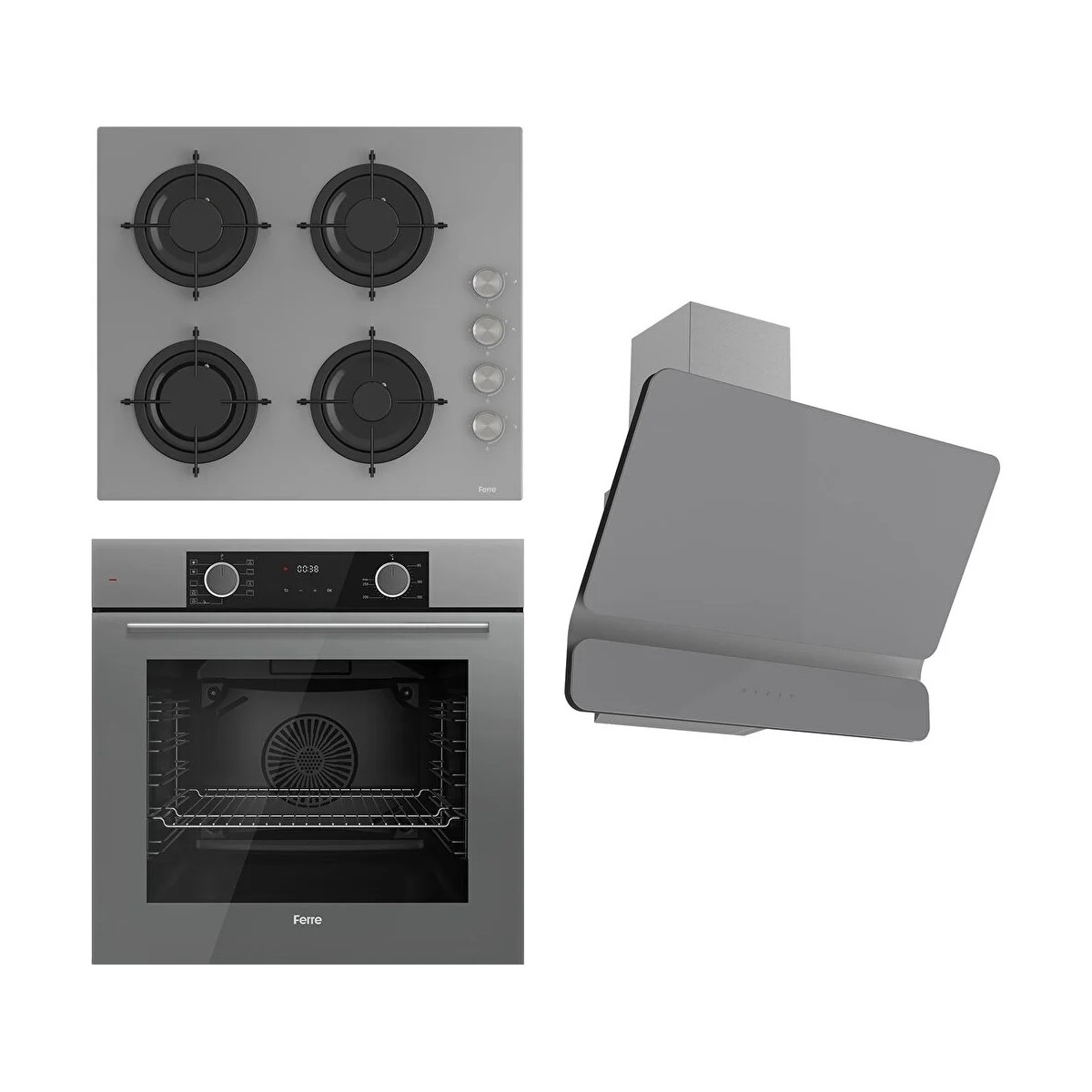 D082 Amortisörlü Dokunmatik Gri Cam Davlumbaz