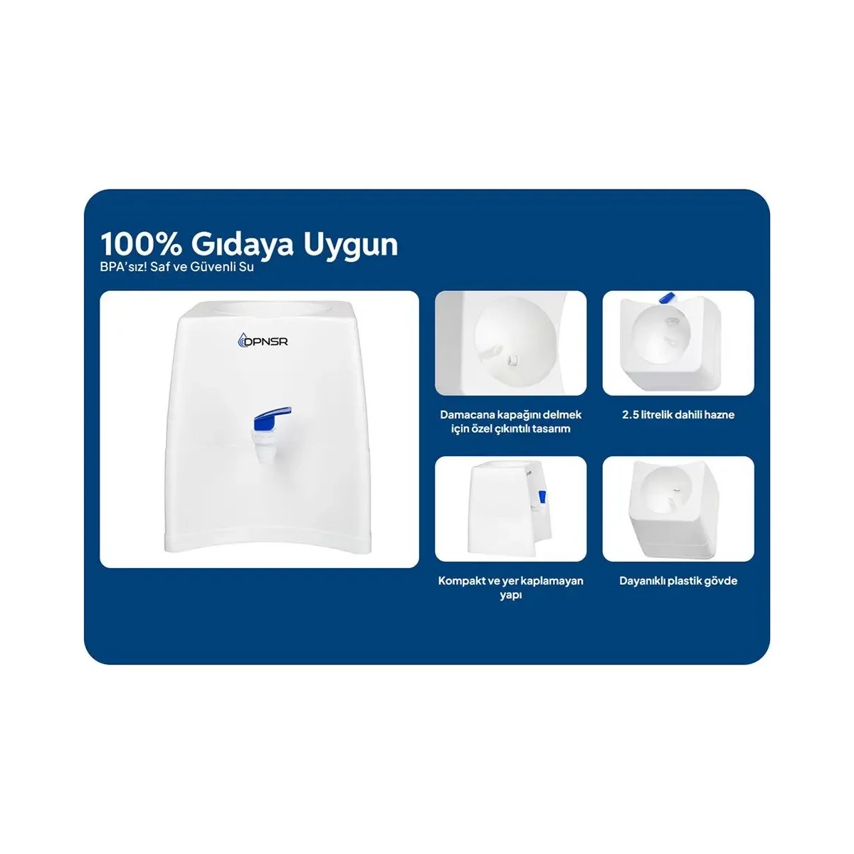 Tüm damacanalarla uyumlu (5L – 19L) – Ofis, ev, piknik, balkon fark etmez, her yerde çalışır.