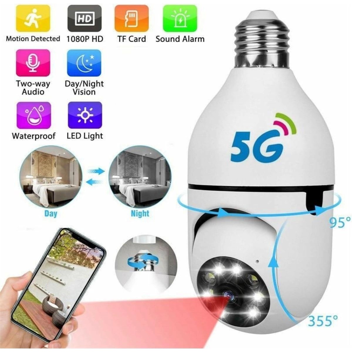 - 1080P ve Panoramik Görüntüleme: Bu ampul kamera, istediğiniz zaman net bir görüş sağlayabilir. Kör alan olmadan 360 görüntüleme elde etmek için kamerayı kontrol etmek için APP’yi kullanabilirsiniz.
