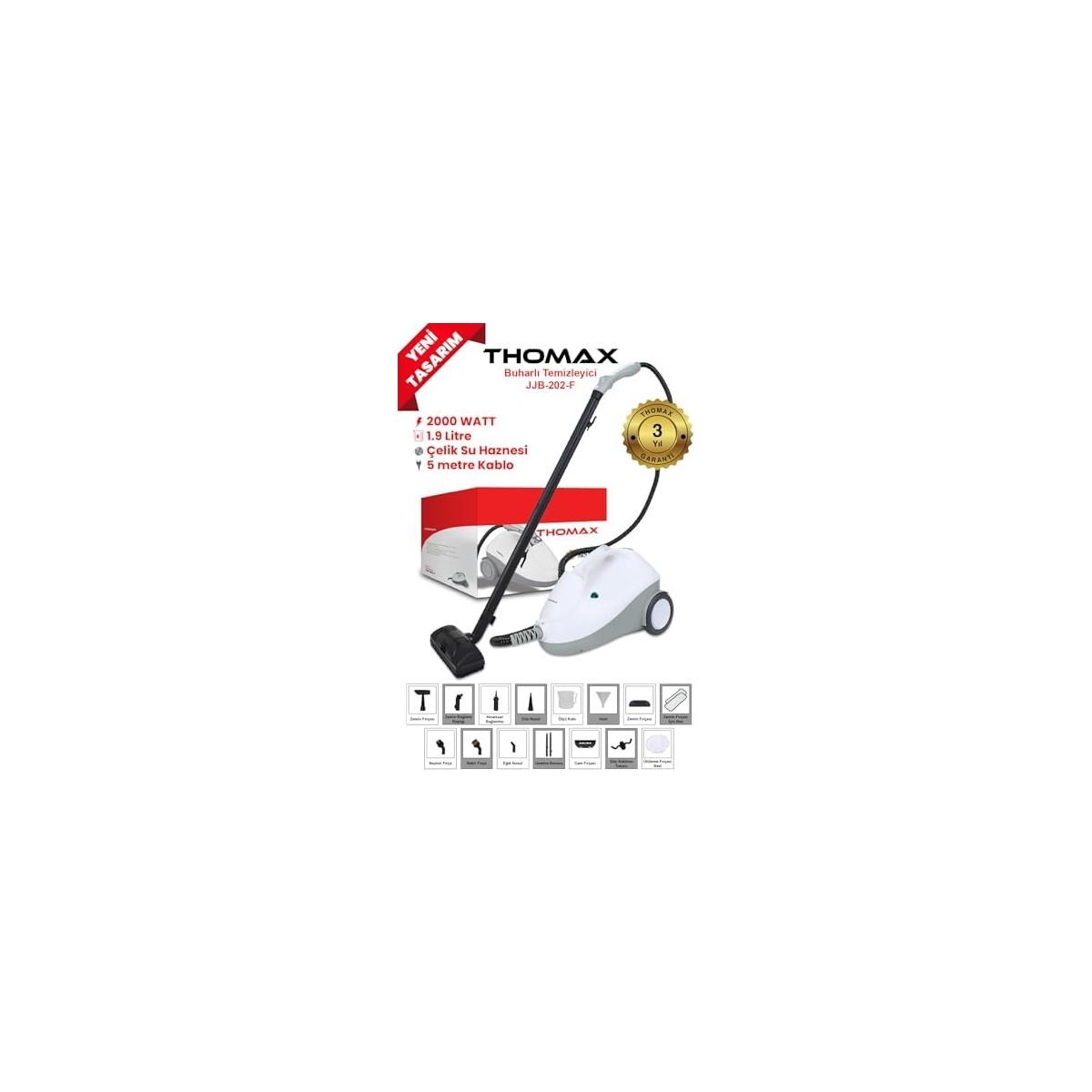 Fonksiyonlu Buharlı Temizleyici Buharlı Temizlik 2000 Watt 1.9lt