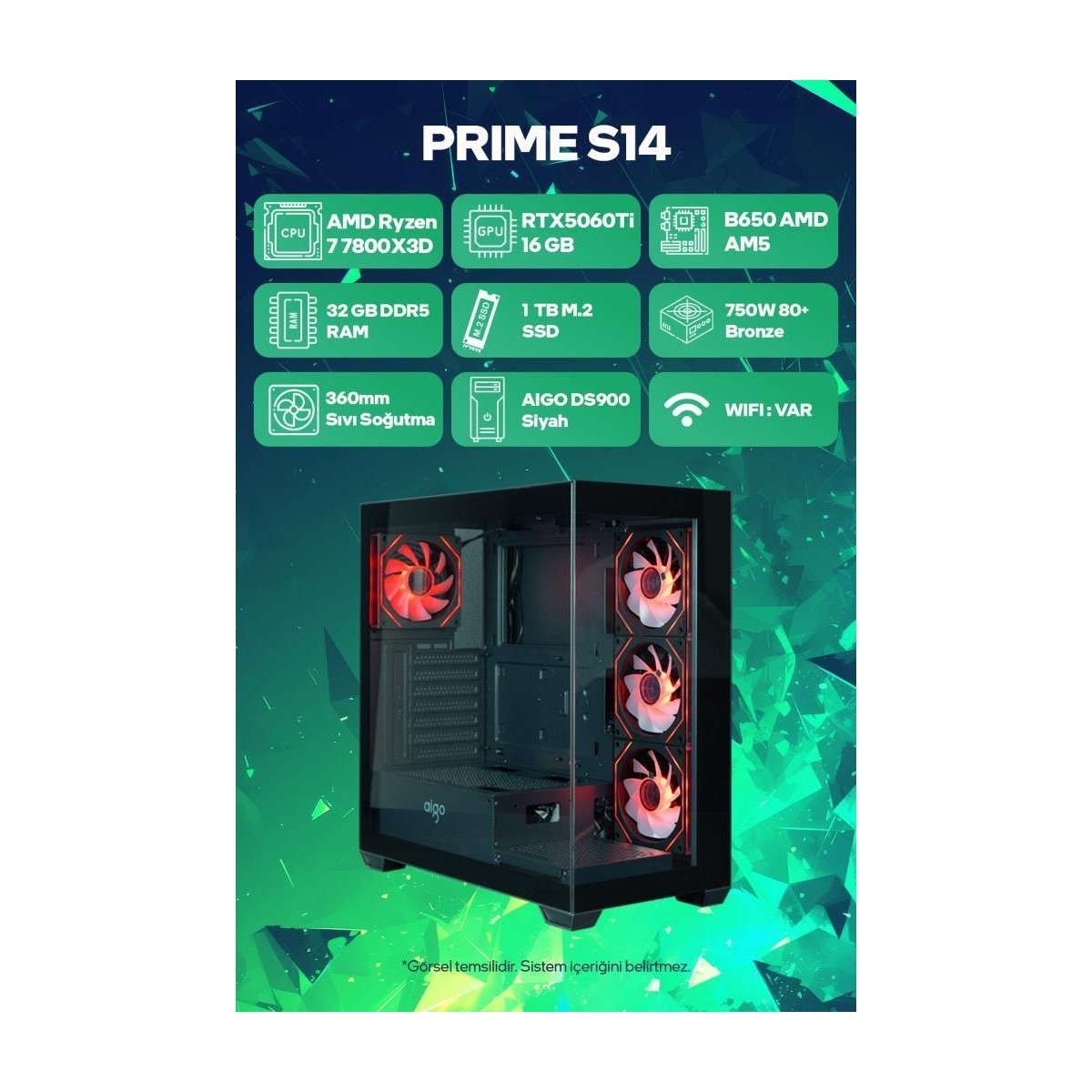 Game Garaj Prime S14 Amd Ryzen 7 7800X3D 32GB Ram 1tb SSD RTX5060TI 16GB 360MM Sıvı Soğutma Freedos Oyuncu Tavsiye Sistem