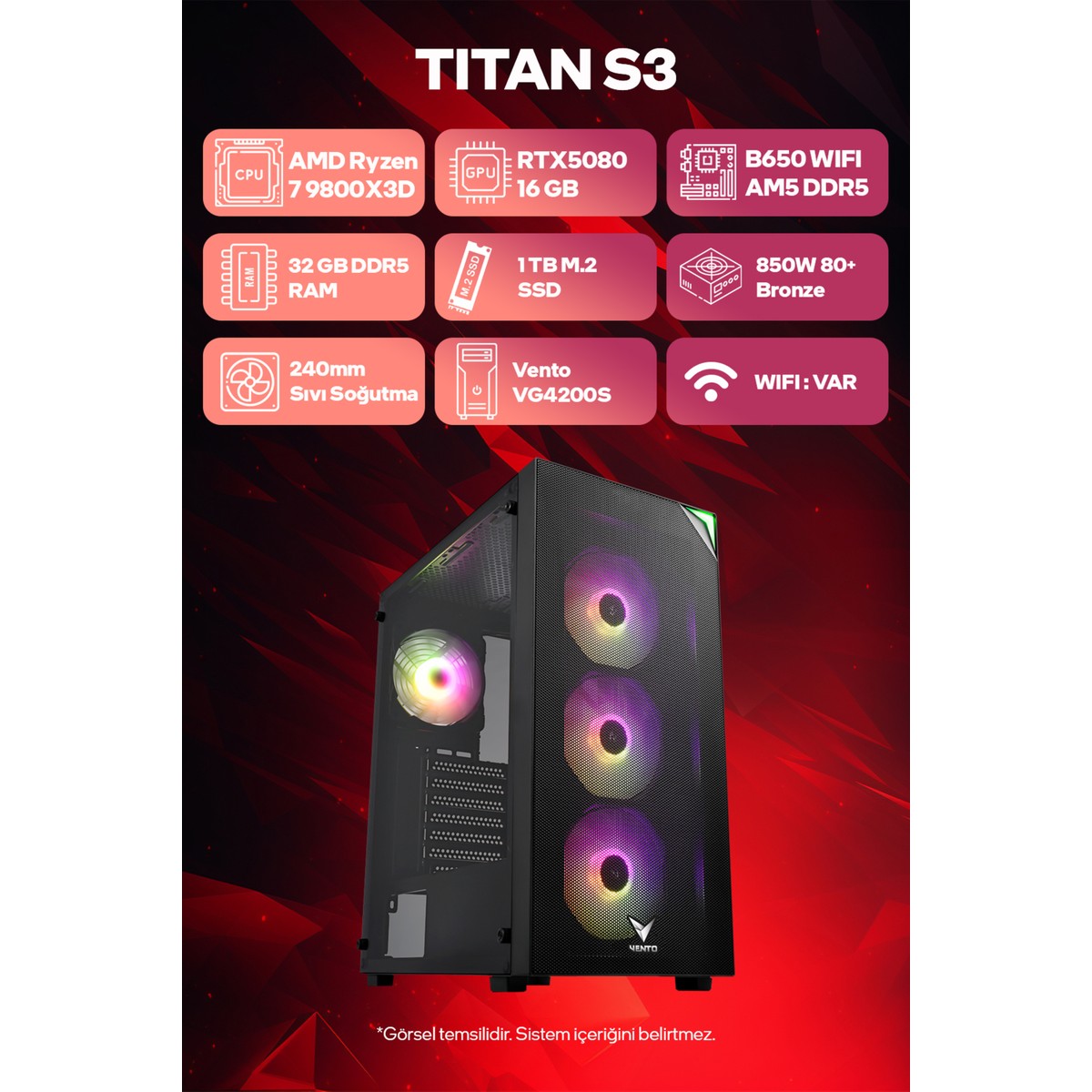 Game Garaj Titan S3 Amd Ryzen 7 9800X3D 32GB Ram 1tb SSD RTX5080 240MM Sıvı Soğutma Freedos Oyuncu Tavsiye Sistem