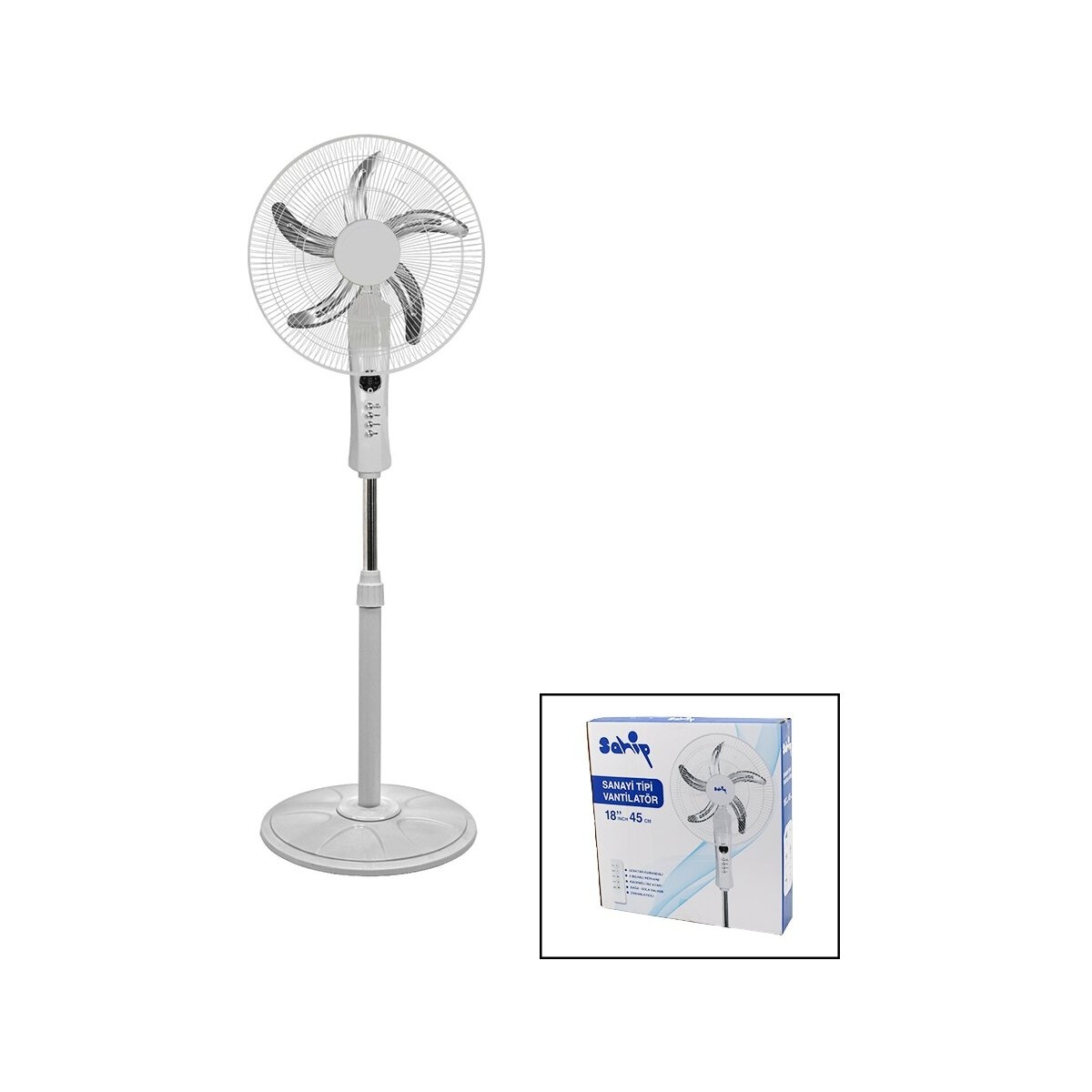 18 Inc 45 cm Kumandalı Sanayi Tipi Ayaklı Vantilatör 5-Metal Pervane 3-Kademe Hız 65W Y:137CM (4989)