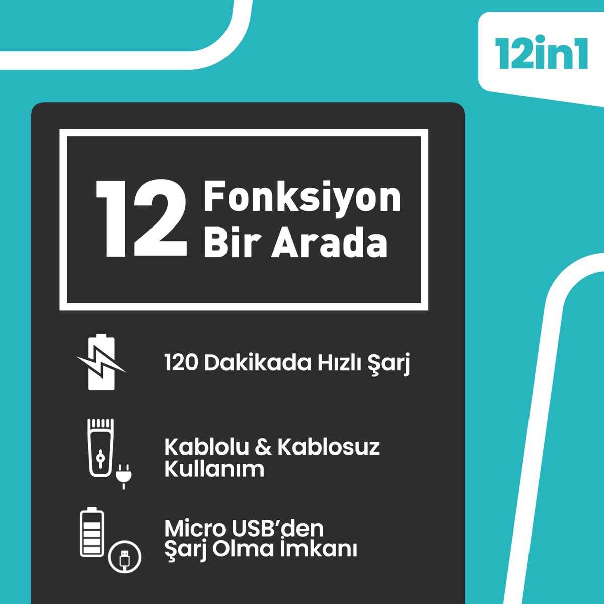 Goldmaster Enerjik Kablolu Kablosuz Hızlı Şarj Paslanmaz Çelik Standlı 12 In 1 Erkek Bakım Seti GM-9112