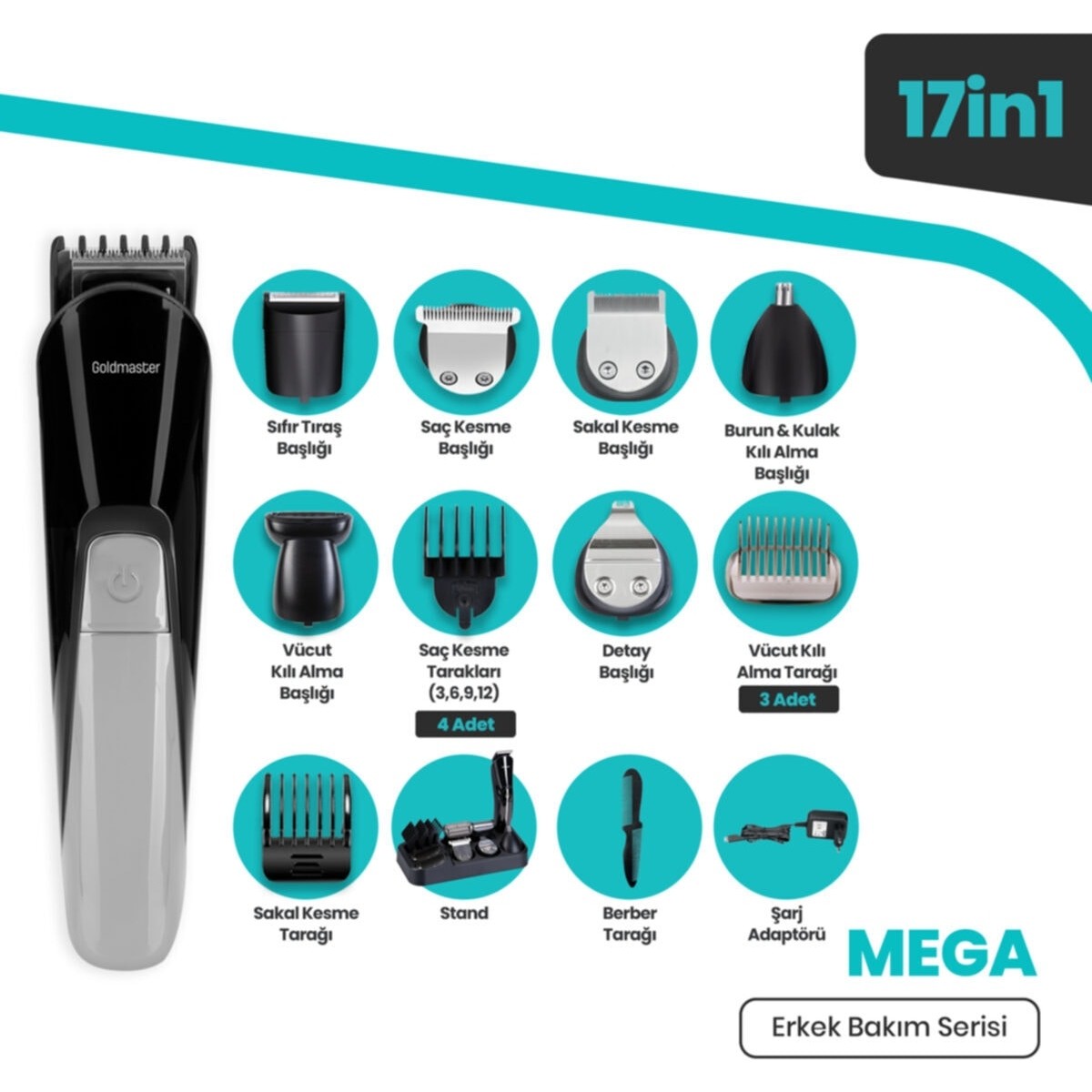 Goldmaster Mega 17 In 1 Erkek Bakım Seti Paslanmaz Çelik Bıçaklı 120 Dk Kablolu Kablosuz Kullanım