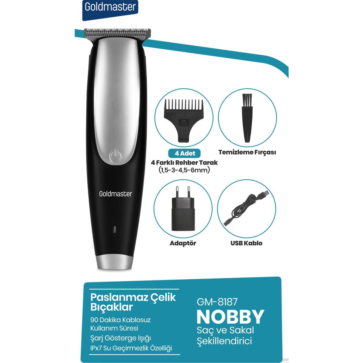 Goldmaster Nobby Ipx7 Su Geçirmez Paslanmaz Çelik Saç Sakal Şekillendirme Kesme Makinesi GM8187
