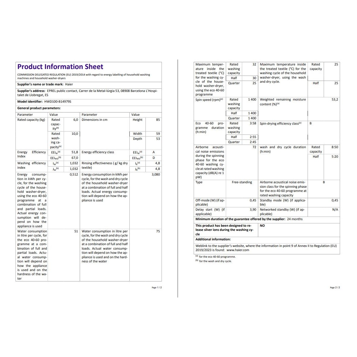 Haier HWD100-B14979-S 10 kg Yıkama 6 kg Kurutma 1400 Devir Kurutmalı Çamaşır Makinesi