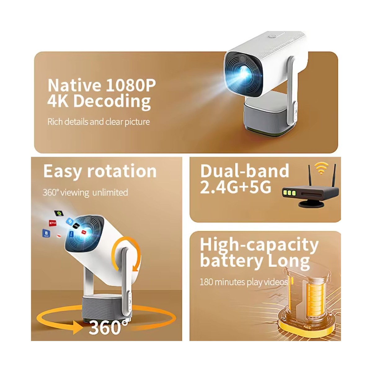 Ev projektörü, 1GB RAM ve 8GB ROM ile Android OS dahili olarak gelir. Eğlenceyi artırmak için istediğiniz uygulamaları indirebilirsiniz. Aynı zamanda projektör, 2.4G/5G WiFi 6 ve BT 5.2 desteği ile Bluetooth uzaktan kumandaya sahiptir, bu da size sorunsuz bir işbirliği ve kontrol hissi yaşatır.