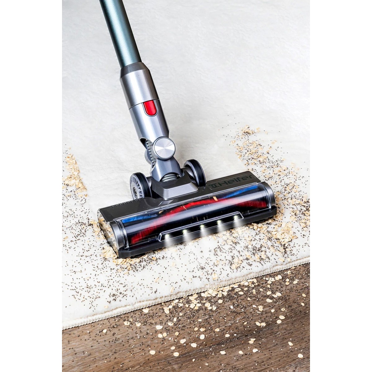 Motorlu LED ışıklı soft drive başlığı zemindeki görünmeyen tozları iki kat daha fazla açığa çıkarır.