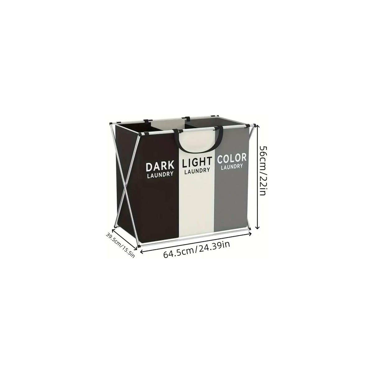 Home 3 Bölmeli Katlanabilir Çamaşır Sepeti – Siyah, Beyaz ve Gri Renklerde, Dayanıklı ve Şık Tasarım, Makinede Yıkanabilir Kumaşlı, Alüminyum Gövdeli, 64X42X58 cm Boyutlarında