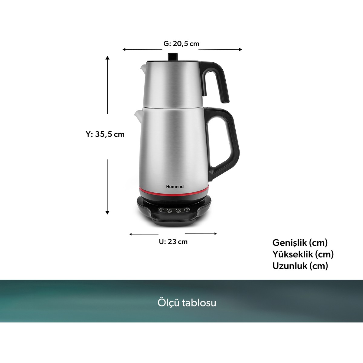 Homend 1708 Royaltea Paslanmaz Çelik Konuşan Çay Makinesi Inox-Siyah 1800 W