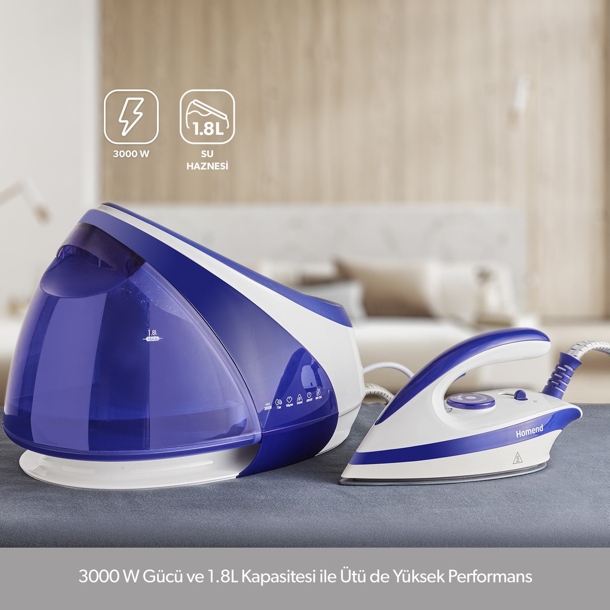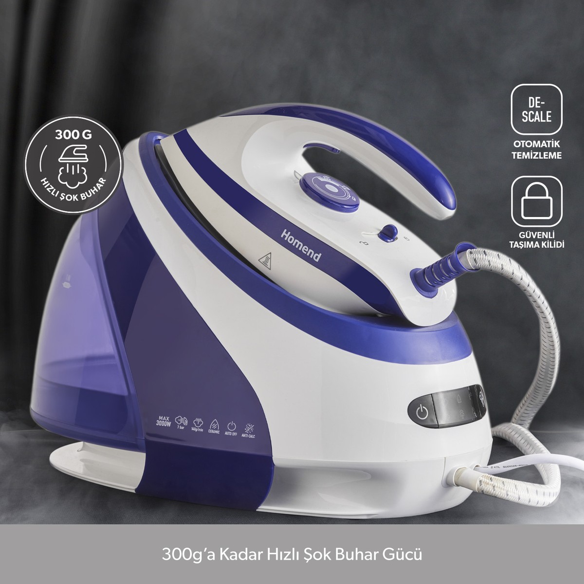 - 3000 W gücü ile ütüde yüksek performans.