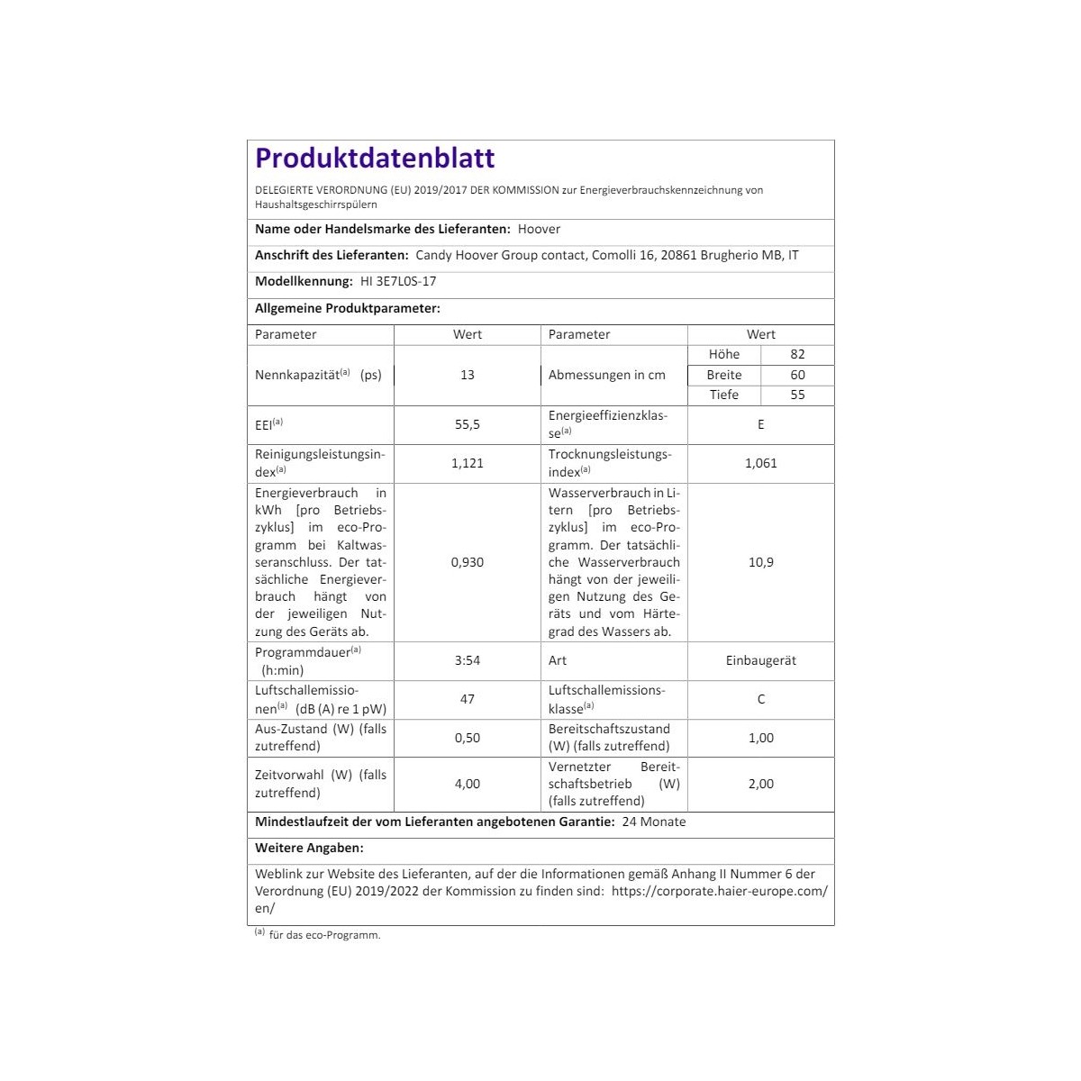 Hoover HI 3E7L0S-17 5 Programlı Wi-Fi Bağlantılı Bulaşık Makinesi için 1 değerlendirme