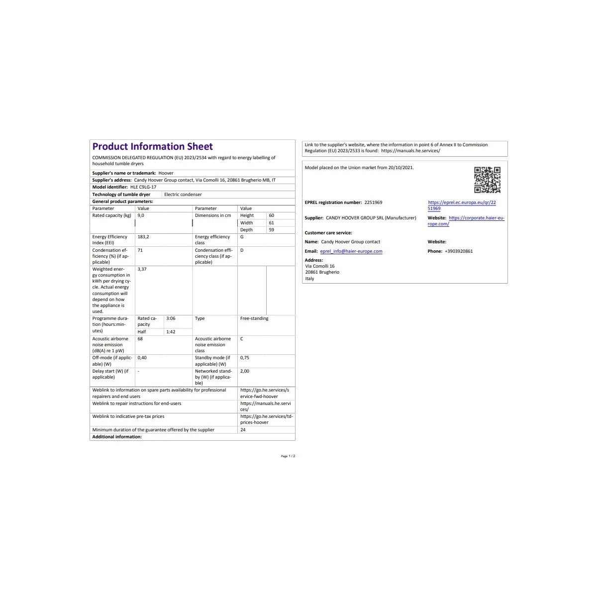 Hoover HLE C9LG-17 9 kg NFC Bağlantılı Kurutma Makinesi