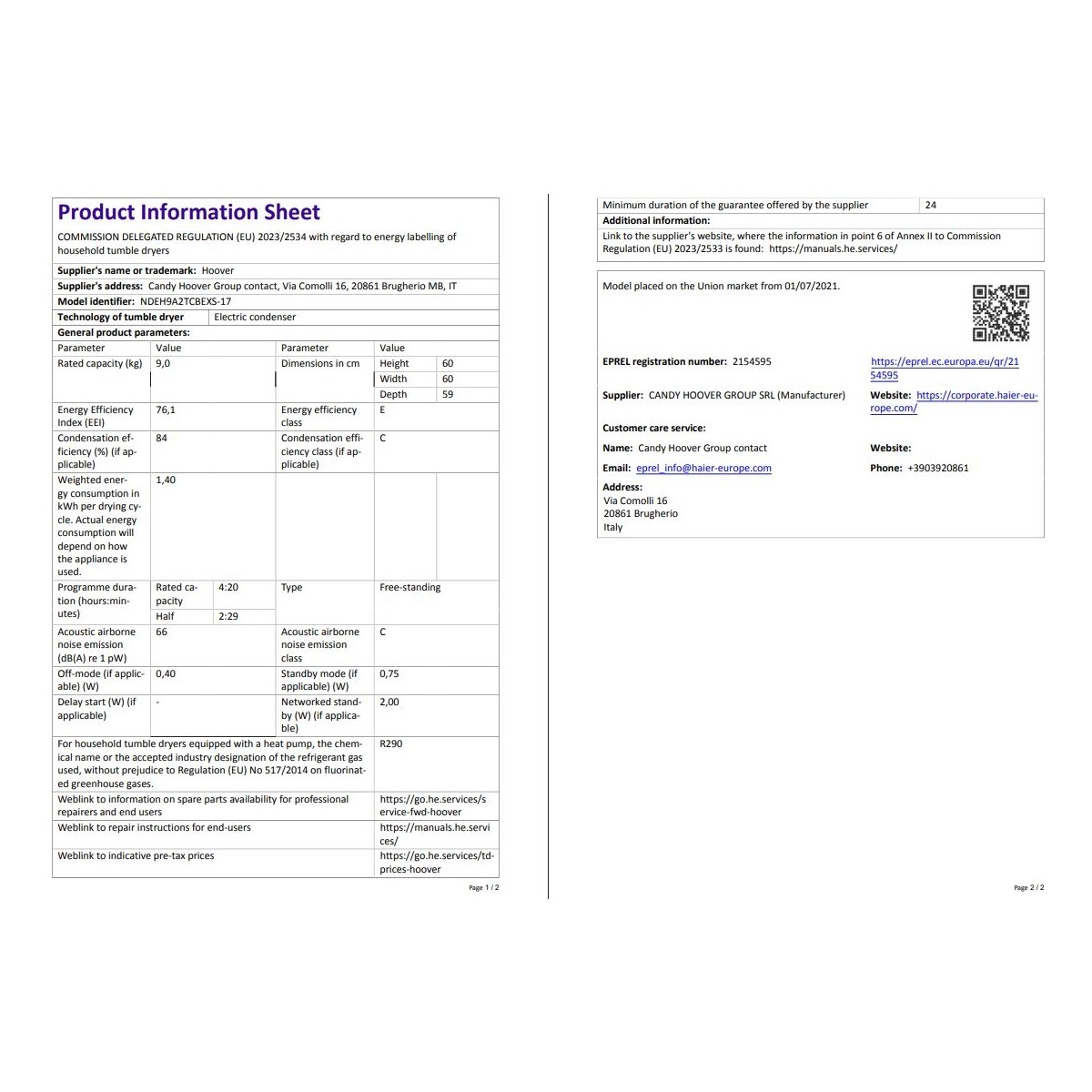Hoover Ndeh9A2Tcbexs-17 9 kg Wi-Fi Bağlantılı Isı Pompalı Kurutma Makinesi için 30 değerlendirme