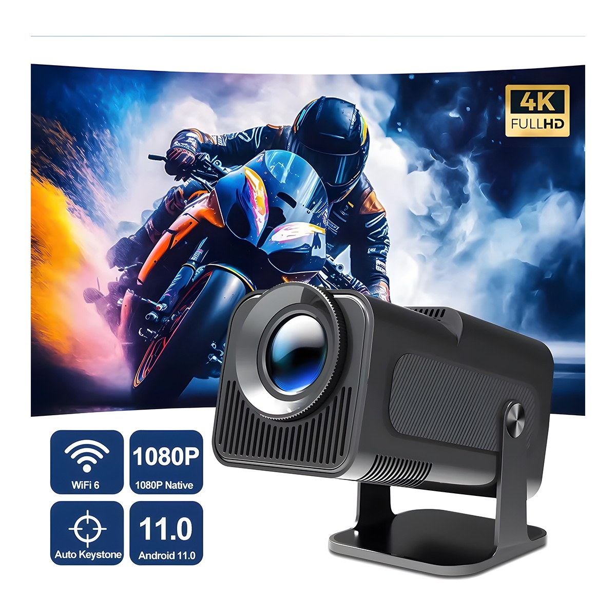 -Güçlü performans ve sorunsuz deneyim: yerleşik Android 11 sistemi, Allwinner H713 dört çekirdekli CPU ve Mali-G31 GPU, 1 GB çalışan bellek ve 8 GB dahili depolama. 16:9 projeksiyon en boy oranını ve 1.1:1 yansıtma oranını destekler.Otomatik trapezoid düzeltme işlevi, projeksiyon açısını dilediğiniz gibi ayarlamanıza olanak tanıyarak size sorunsuz bir kullanım deneyimi sunar.