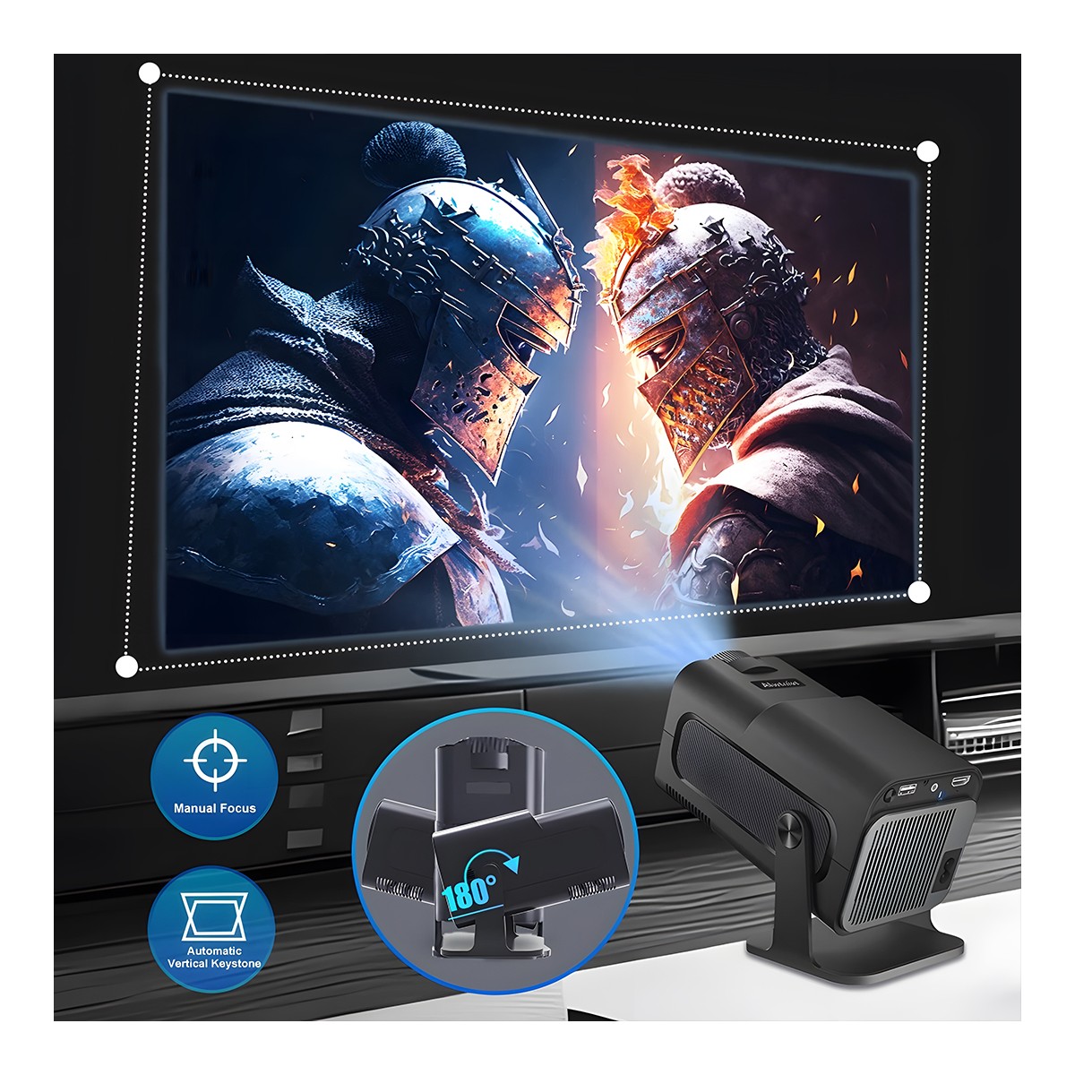 -Yüksek çözünürlüklü görsel keyif: 720P fiziksel çözünürlük, esnek renk sıcaklığı ayarı, 8000K’ye (±%10) ulaşma, 200 Ansi LM’ye kadar parlaklık, kontrast oranı 1000, tekdüzelik %80, nerede izlerseniz izleyin net görüntü elde edebilirsiniz ve parlak resim.