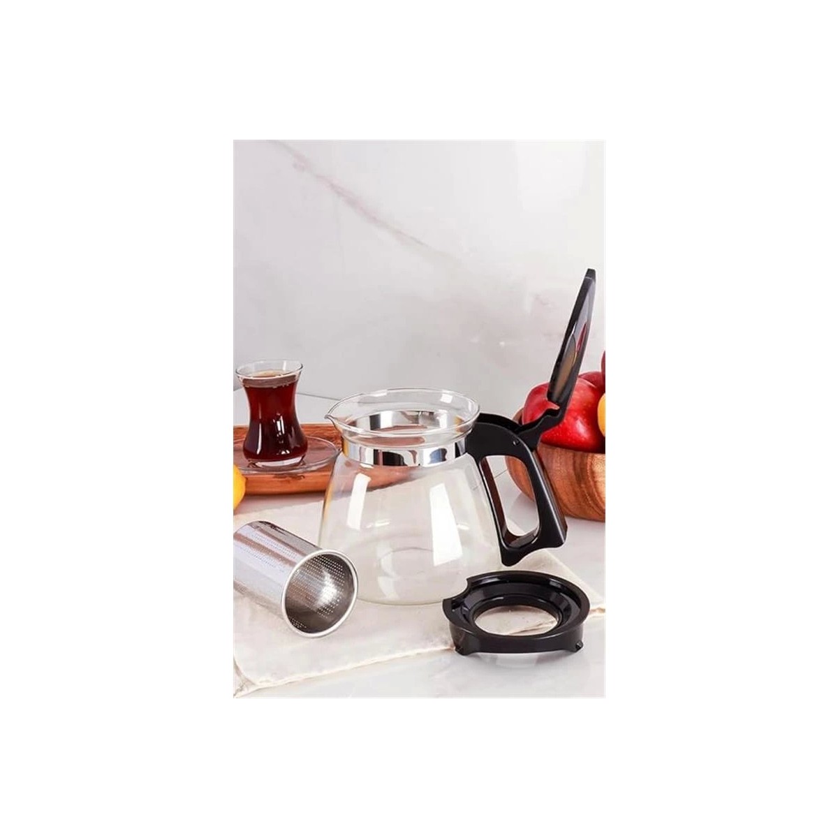 Isıya Dayanıklı Borosilikat Cam Demlik, Kendinden Süzgeçli, Şık Tasarım (900 Ml)