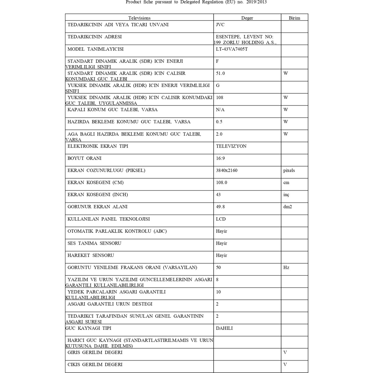 JVC LT-43VA7405T 43” 108 Ekran Uydu Alıcılı 4K Ultra HD Android Smart TV