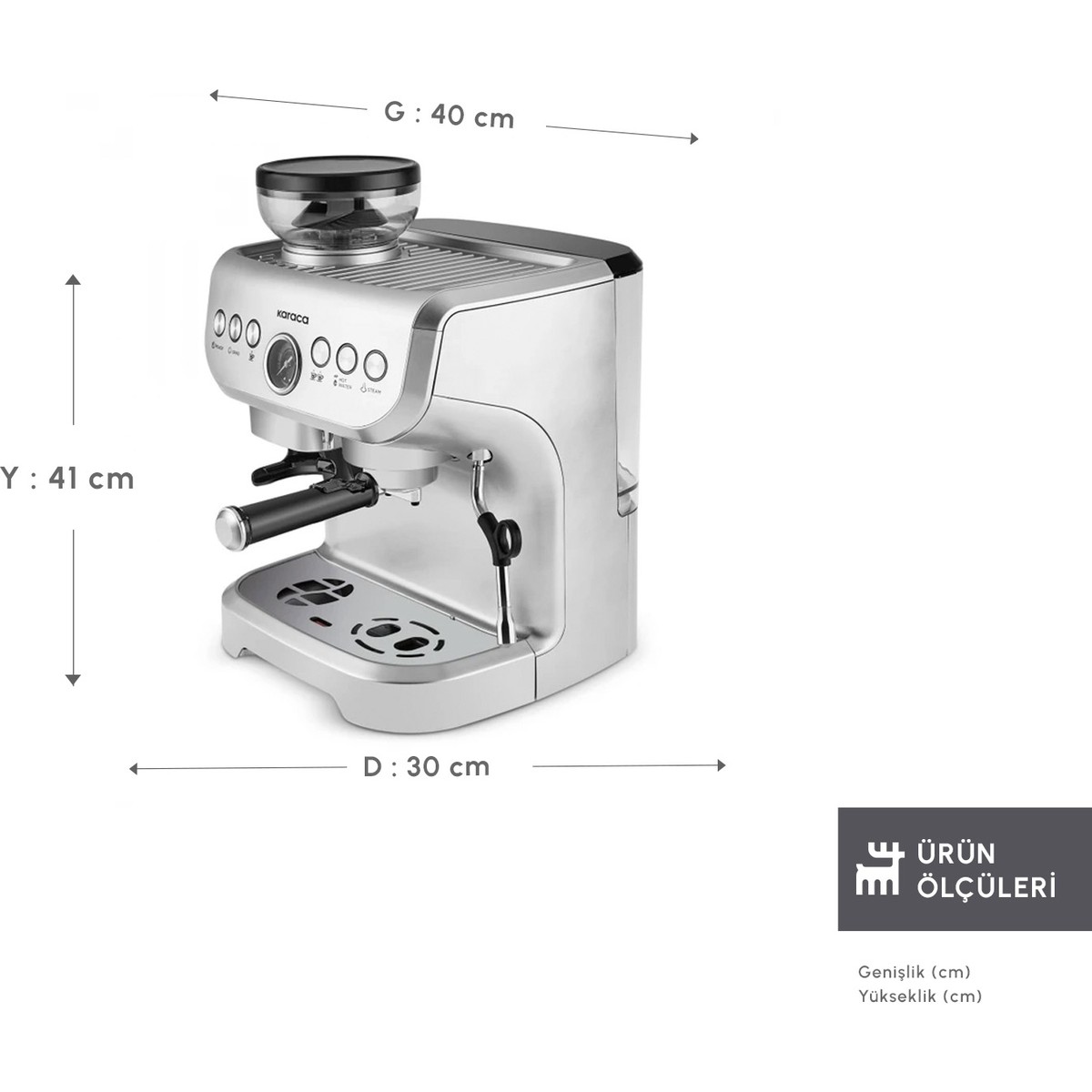 Karaca Coffee Art Barista Kahve Öğütücülü, Süt Köpürtücülü, 15 Bar Basınçlı Espresso, Latte, Cappuccino, Americano Makinesi 2 Lt