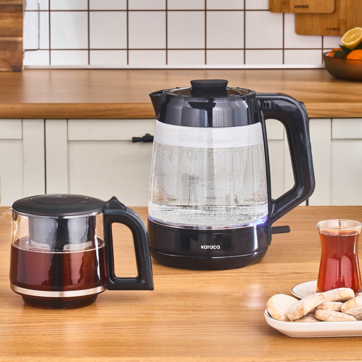 Karaca Glass Tea Xl 2 In 1 Cam Çay Makinesi Shiny Black