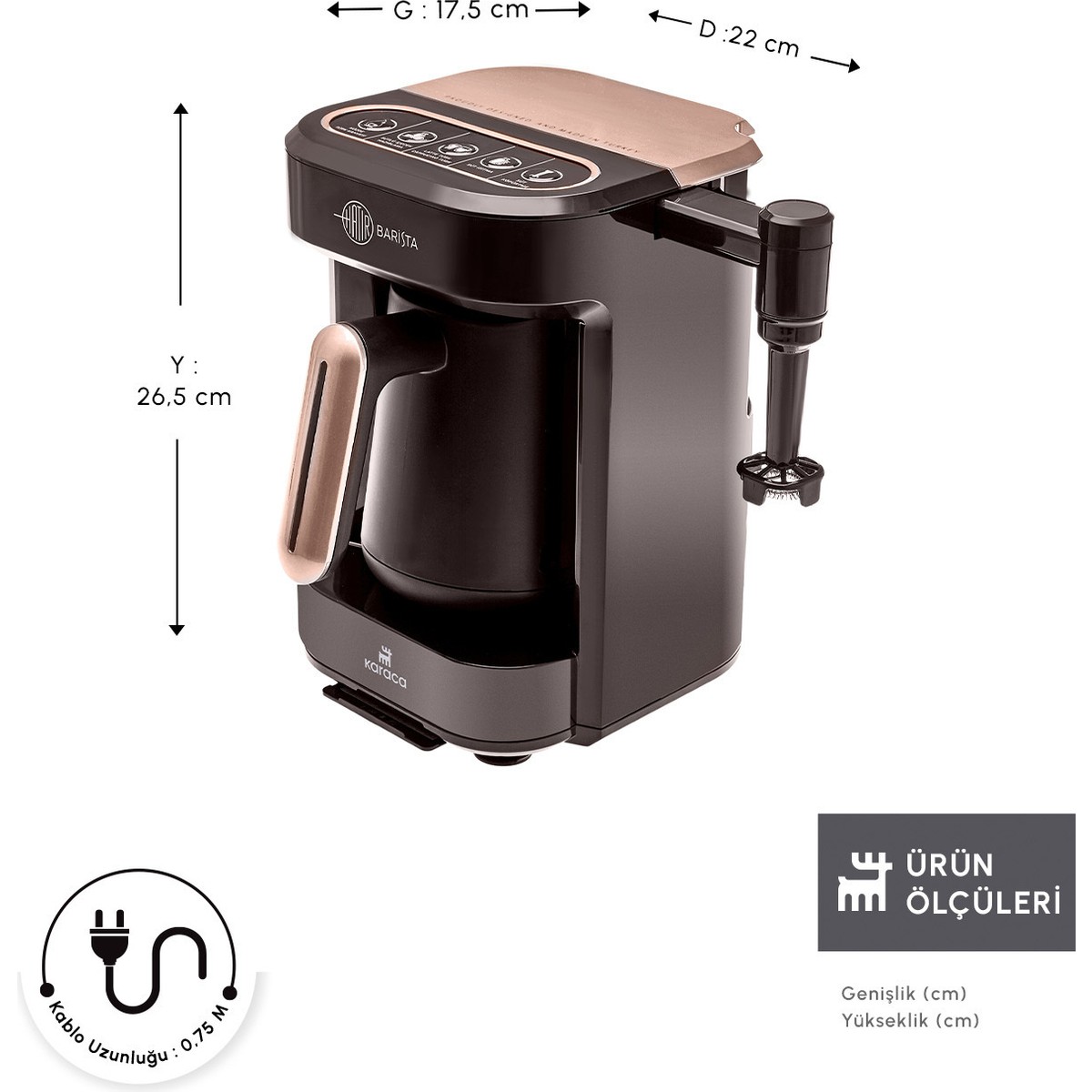 Karaca Hatır Barista Türk Kahve Makinesi – 5 Fincan, Süt Köpürtme ve Sütlü İçecek Hazırlama Özellikli, Kolay Temizlenen Ceviz Kahverengi