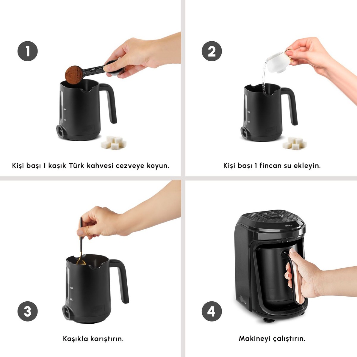 Karaca Hatır Hüps Quartz Közde Türk Kahvesi, Sütlü Türk Kahvesi, Sütlü İçecek Hazırlama Makinesi 5 Fincan Kapasiteli Bol Köpüklü Black Copper için 15 değerlendirme