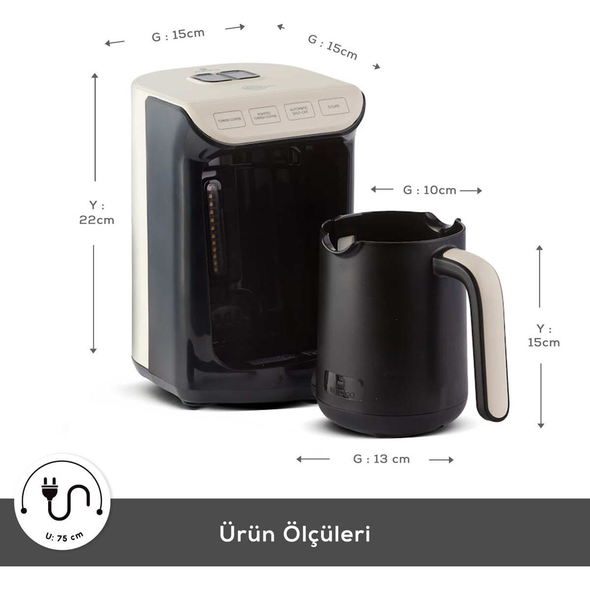 Karaca Hatır Köz Türk Kahve Makinesi Krem 5 Fincan Kapasiteli Bol Köpüklü
