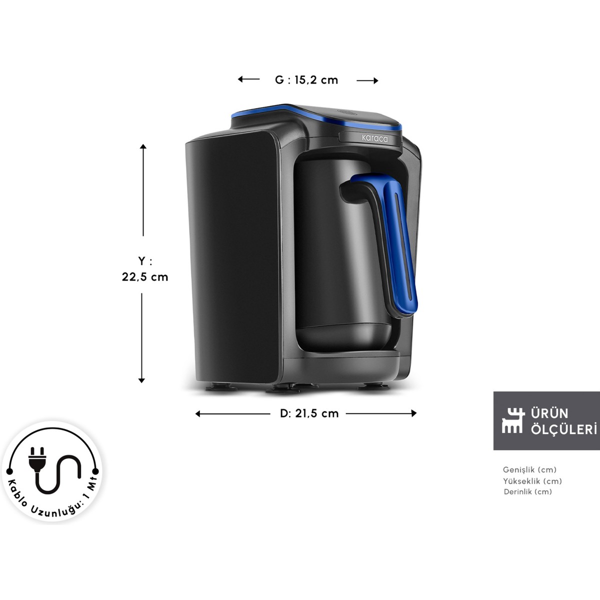 Karaca Hatır Neo Türk Kahvesi Makinesi ile Türk kahvesi, közde Türk kahvesi ve aromalı Türk kahvesi keyfi sizinle! Damak zevkinize göre istediğiniz 3 lezzetten birini seçerek tek seferde 5 fincan kahve hazırlayabilirsiniz. Sıcaklığını otomatik ayarlayarak kahvenizi en lezzetli şekilde pişirir. Sesli ve ışıklı uyarı sistemi, pişirme tamamlandığında size haber verir; böylece makinenin başında beklemenize gerek kalmaz. Sahip olduğu taşma önleyici sensör ve otomatik kapanma fonksiyonuyla güvenli bir kullanım sunar.