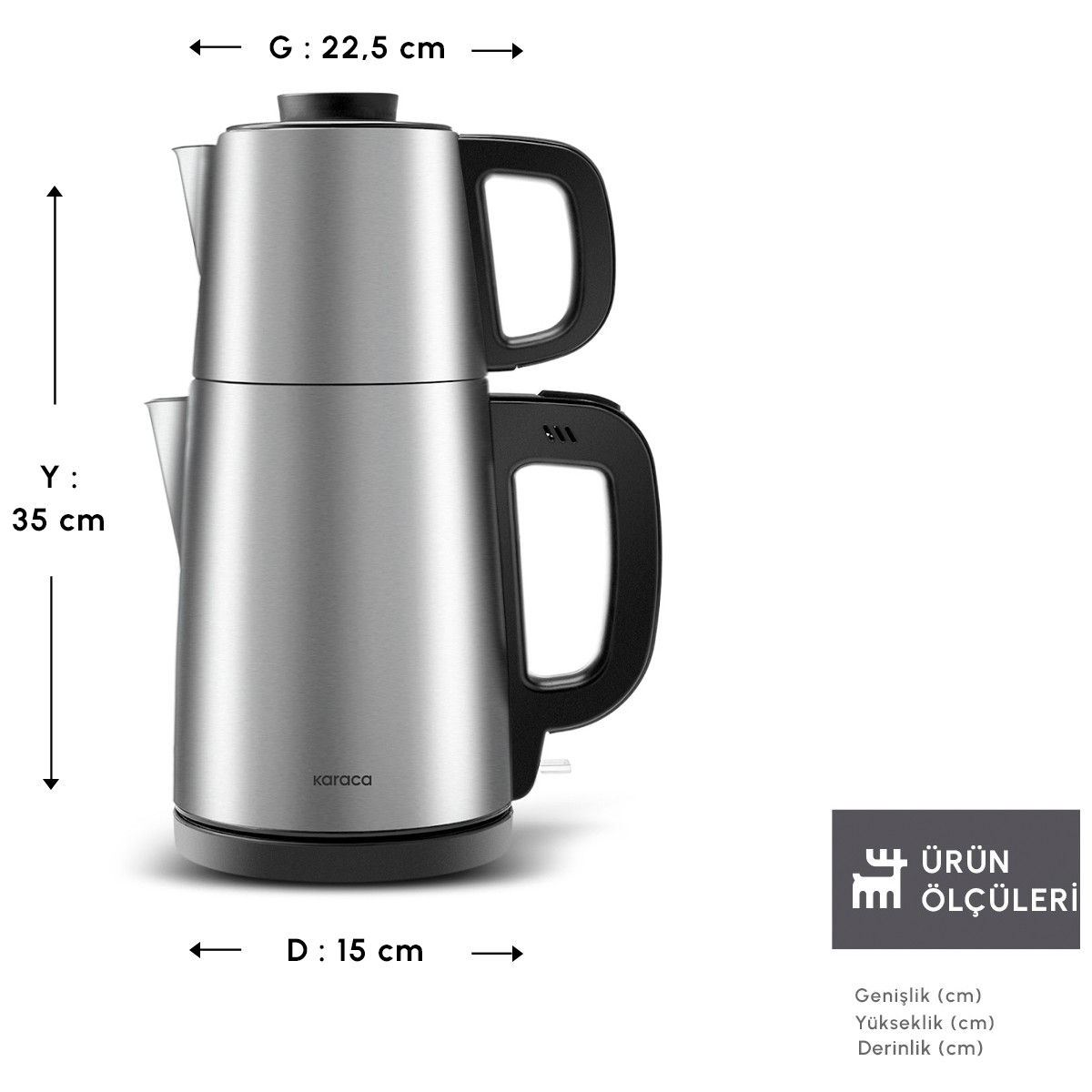 Karaca Tea Break İnox Siyah Çelik Su Isıtıcı & Çay Makinesi