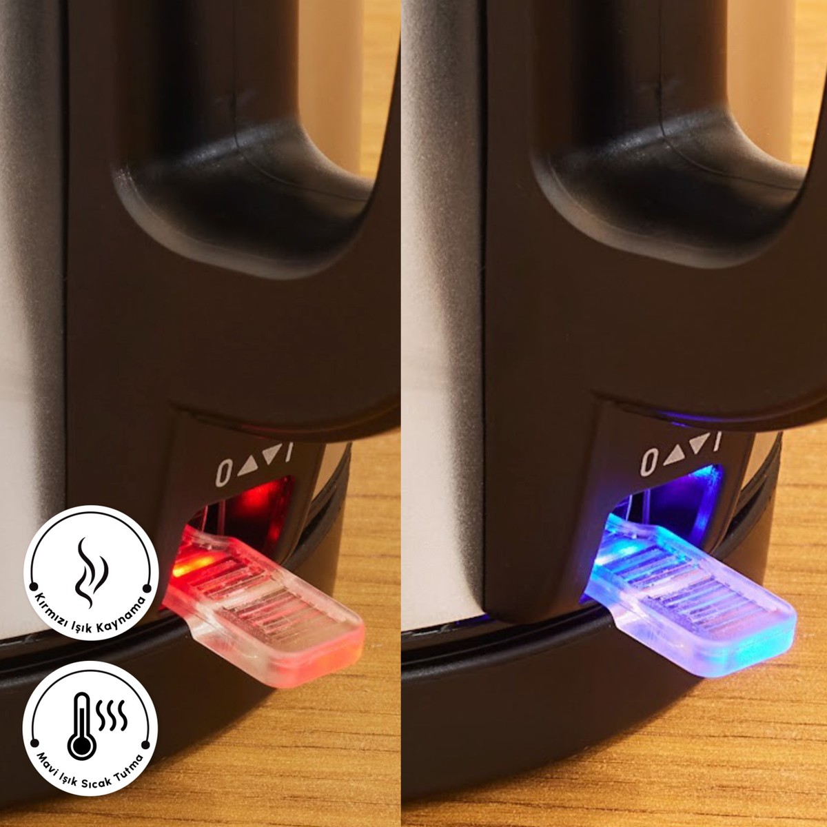 Su Isıtıcısı Üzerinde Bulunan Açma Düğmesi Üzerinde Yer Alan Durum Işığı İle Kaynatma Ve Sıcak Tutma Durumunu Takip Edebilirsiniz. Kırmızı Işık, Kaynama Modunu, Mavi Işık İse Sıcak Tutma Modunu Temsil Eder.