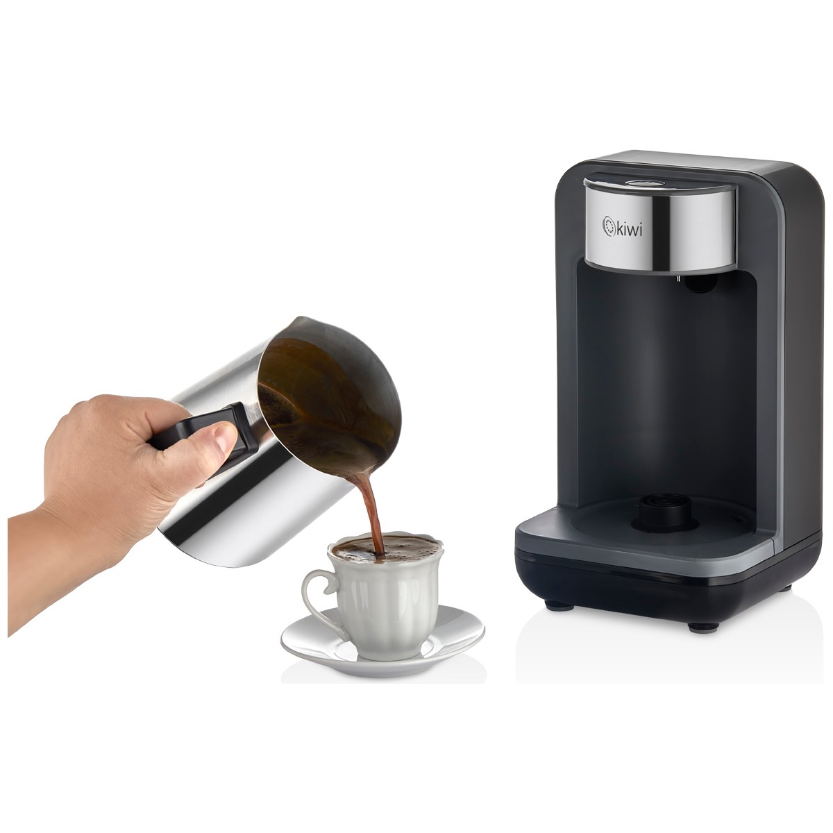 Kiwi Otomatik Türk Kahve Makinesi — bol köpüklü ve lezzetli Türk kahvesi keyfini pratik ve güvenli bir şekilde sunar. Kompakt tasarımıyla mutfağınızda az yer kaplar, çelik cezvesi ile uzun ömürlü kullanım sağlar.
