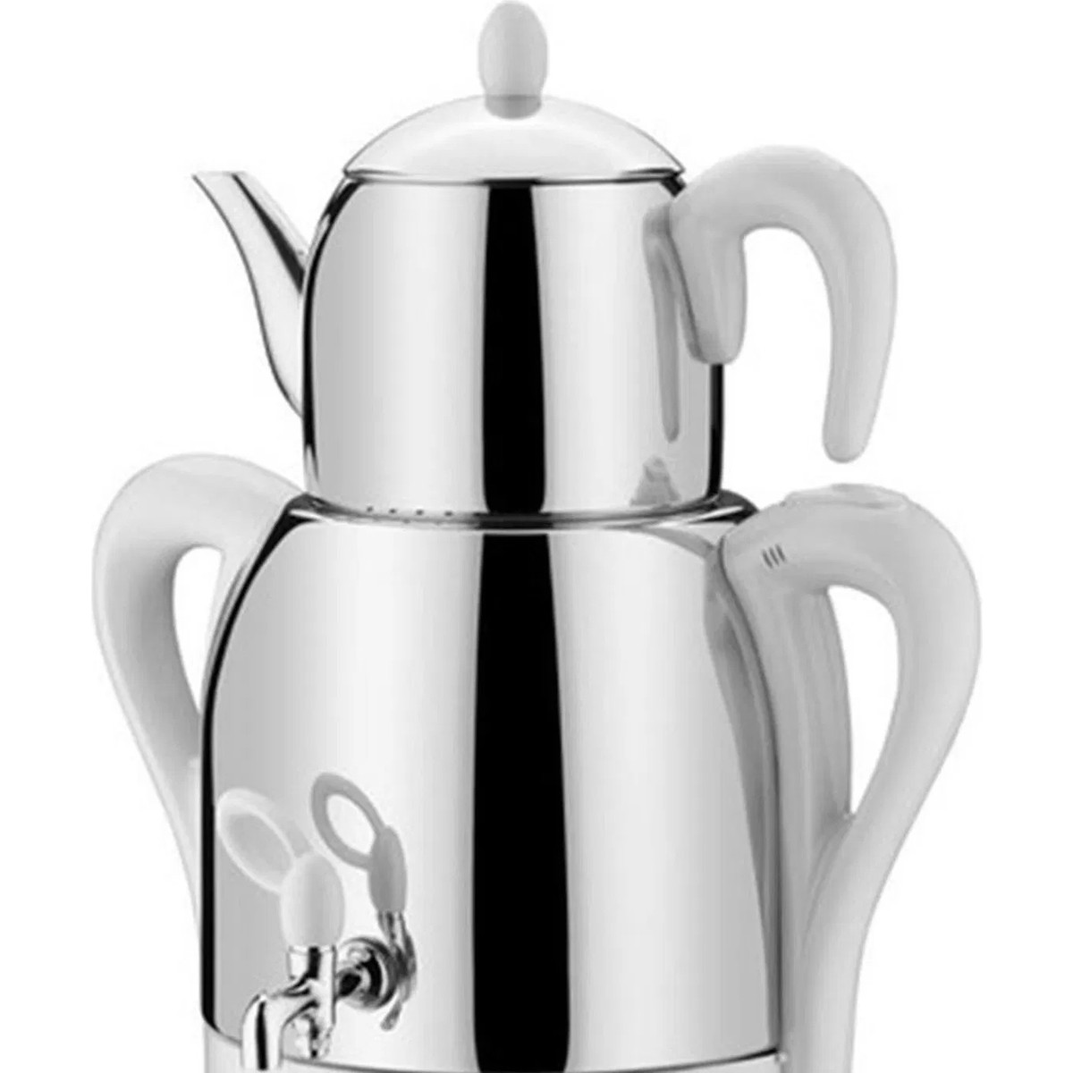 Yenilikçi tasarımı ile mutfakların vazgeçilmezi olan elektrikli semaver, 1.1 litre üst demlik haznesi ve 3.0 litre sıcak su kapasitesi sayesinde en geniş ailelerin bile çay servisini tek başına yapmaya yeter.