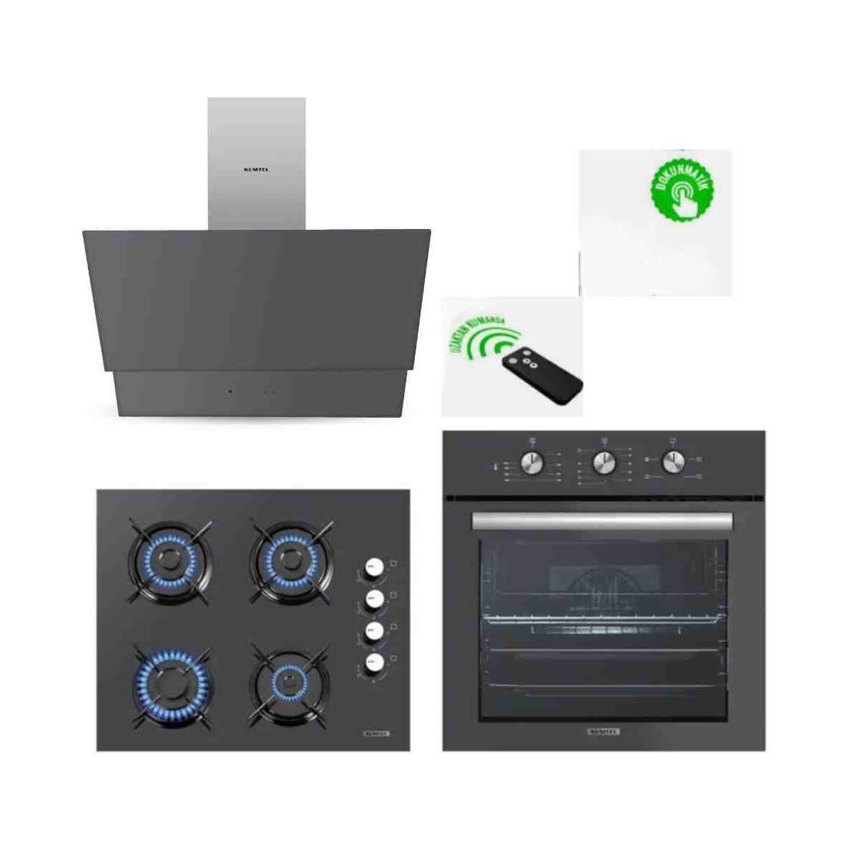 Kumtel 3’lü Ankastre Set Antrasit (Kumandalı 835 Davlumbaz + Ko-40 Ankastre Ocak + BS66 Ankastre Fırın)