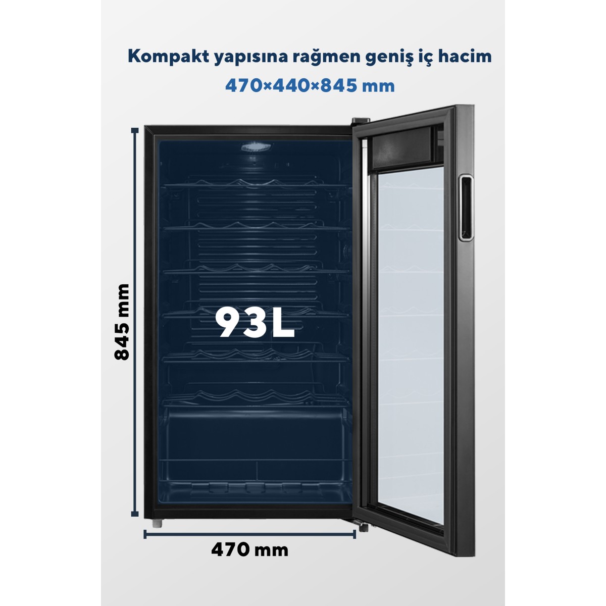 Şeffaf cam kapak sayesinde içerideki ürünleri kolayca görebilir, dijital kontrol paneli ile sıcaklığı dilediğiniz gibi ayarlayabilirsiniz. Şık ve sade tasarımıyla her ortama uyum sağlar.
