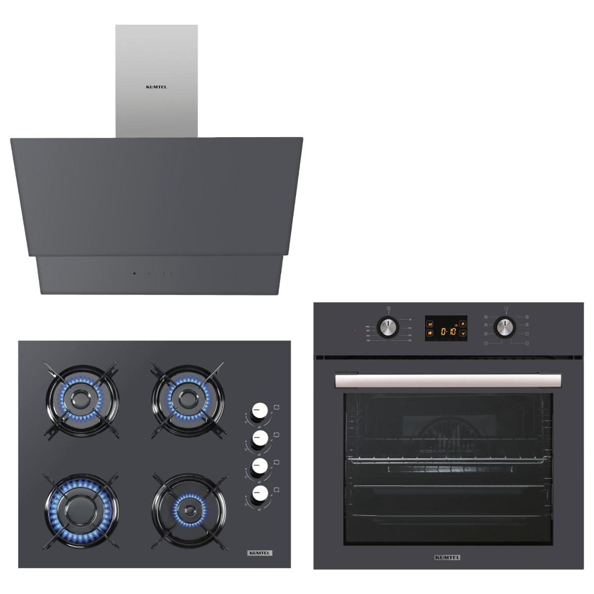 Kumtel antrasit (gri) cam digital dokunmatik ankastre set içerisinde yer alan her ürün, son teknoloji ile donatılır. Hem dokunmatik panel hem de uzaktan kumanda ile kontrol edilebilen cam davlumbaz, 3 hız kademesine sahiptir. Güçlü LED aydınlatması, yemek pişirirken yeterli olur. Sette bulunan ocak, antrasit cam yüzey üzerinde emaye bek ve ızgaralardan oluşur. Kontrol düğmeleri ocağın yan tarafında yer alır ve otomatik çakmak özelliğine sahiptir. Turbo fan özellikli fırın ise 8 pişirme fonksiyonuna sahiptir. Isı ve fonksiyon düğmeleri pop-up özelliğe sahiptir. Kullanılmadığı zamanlarda gizlenebilir. Bu özellik çocuklu evler için avantaj oluşturur. Dijital ekran dokunmatiktir ve bu ekran üzerinden zamanlama ayarı yapılabilir.