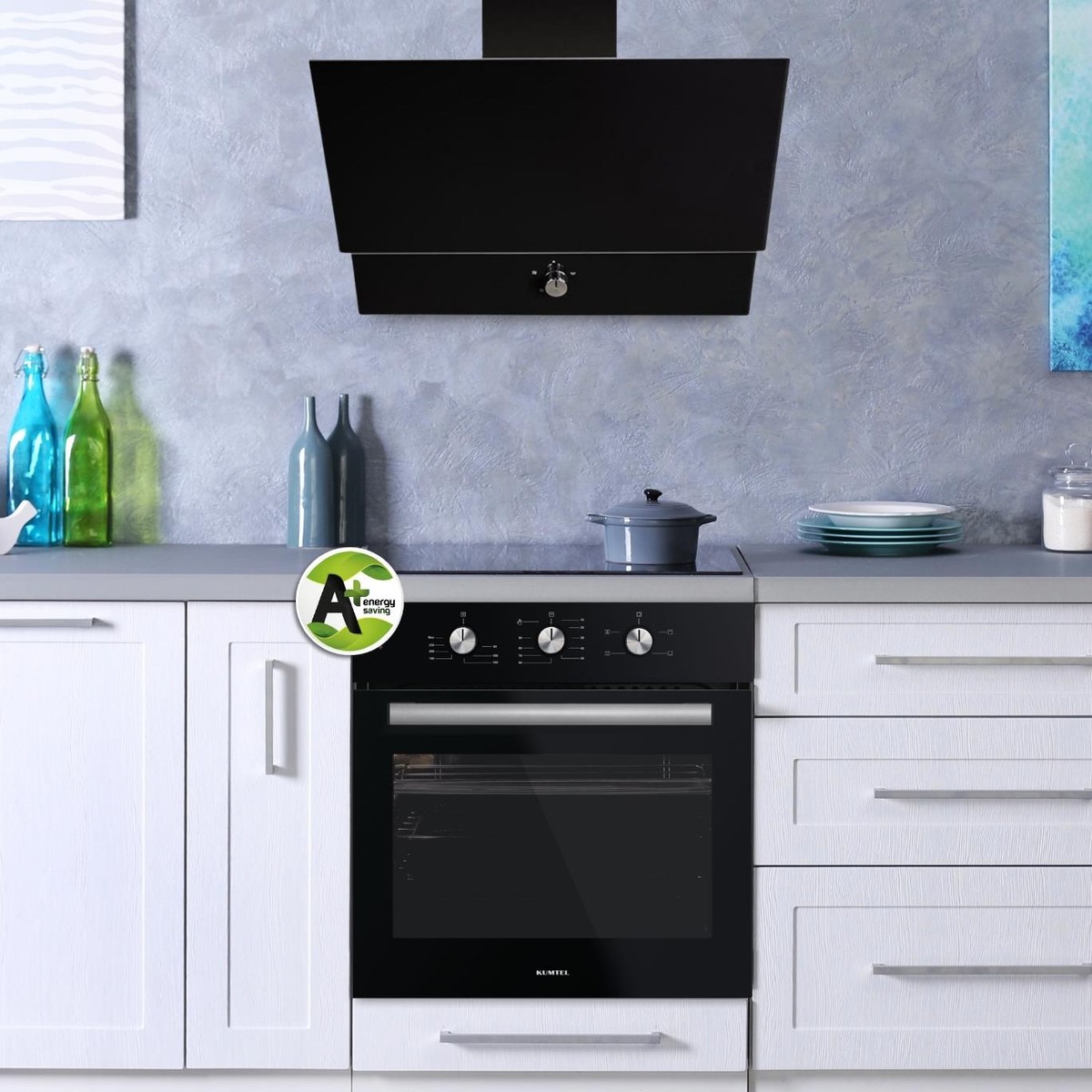 Kumtel Duvar Tipi Davlumbaz Siyah Cam Gövde LED Aydınlatma ve Yıkanabilir Yağ Filtresi