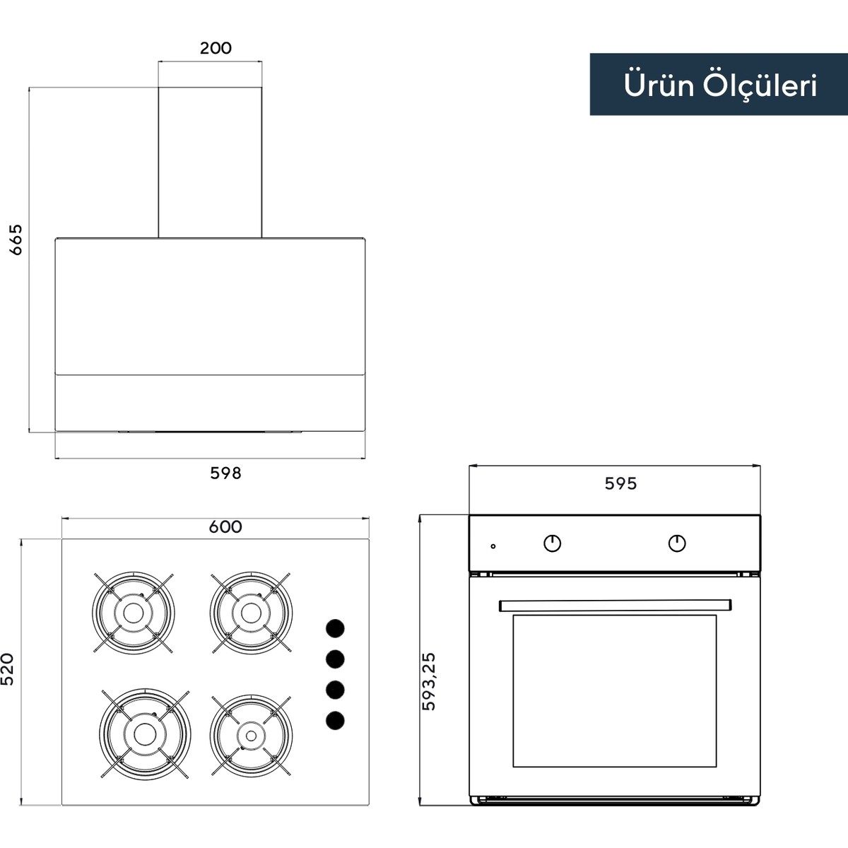 Kumtel Home Plus Beyaz Cam Ankastre Set