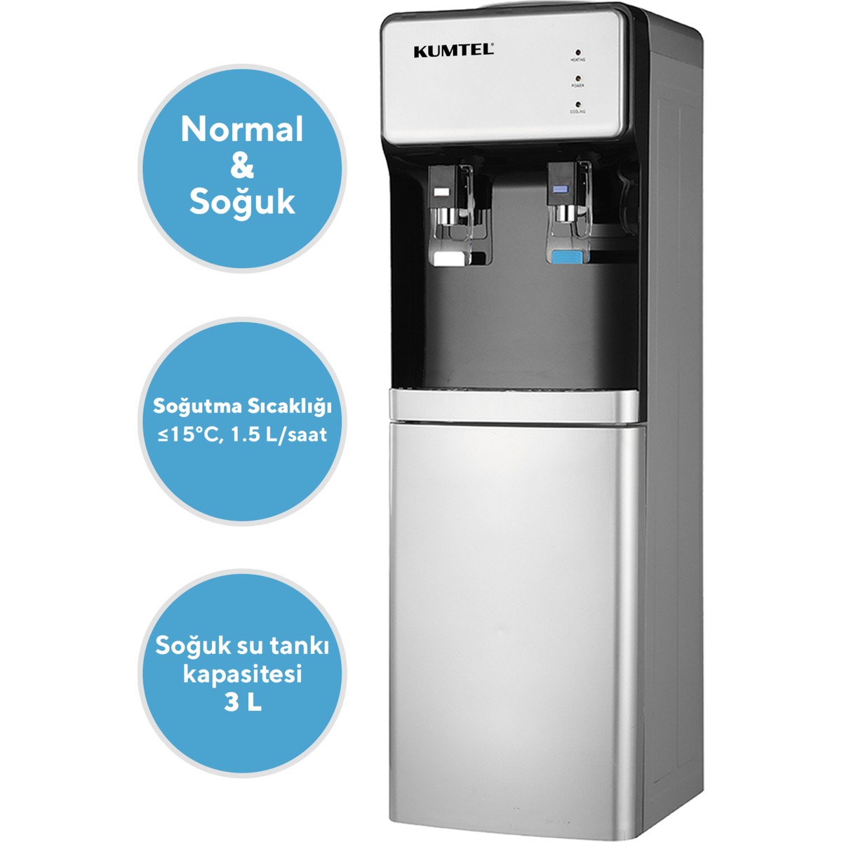 Normal & Soğuk Su Seçeneği: Kompresörlü soğutma sistemi sayesinde her zaman ideal sıcaklıkta içme suyu.