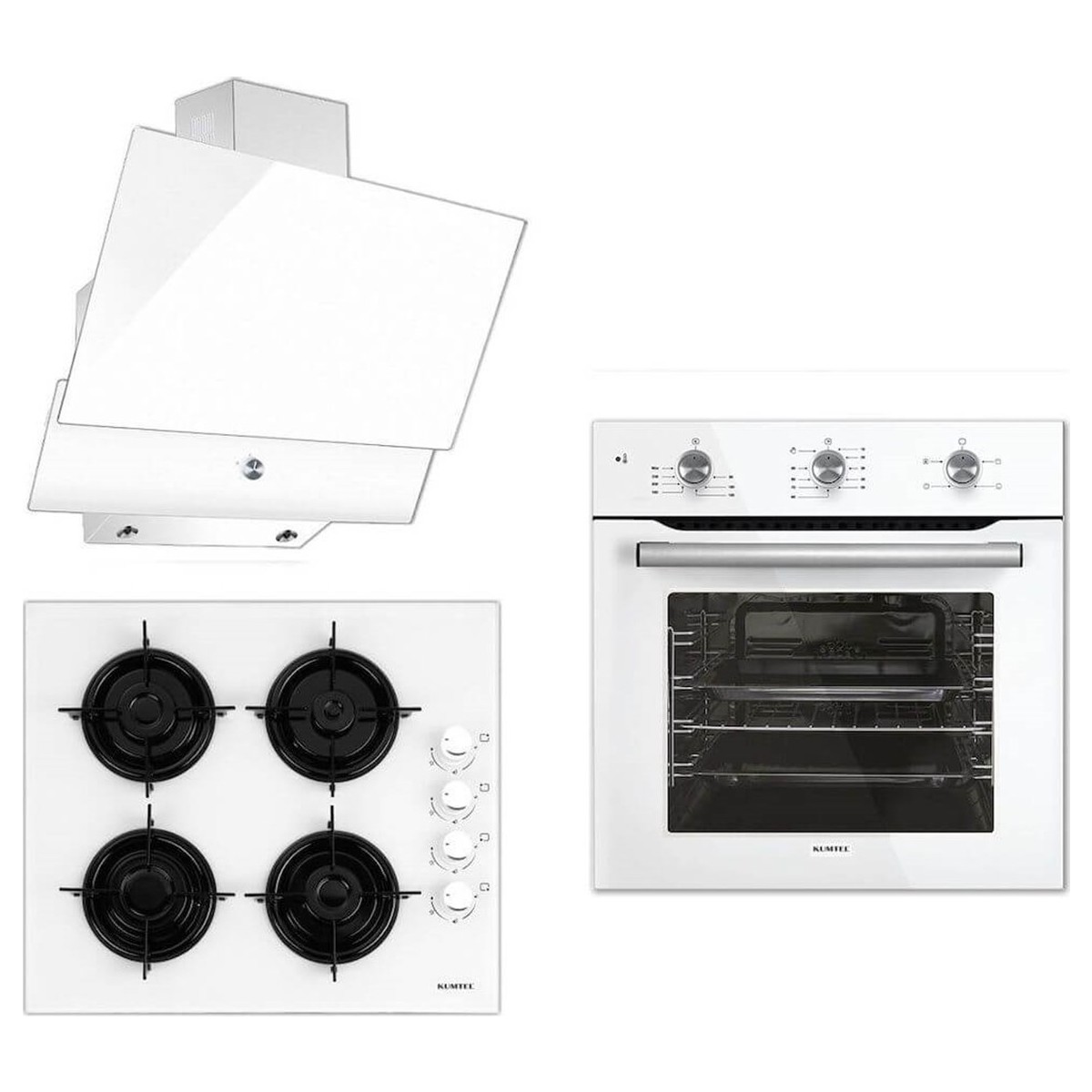 Kumtel Kristal Beyaz Ankastre Set ( B66S2 Fırın – KO-40TAHDF Ocak – DA6-830 Davlumbaz )