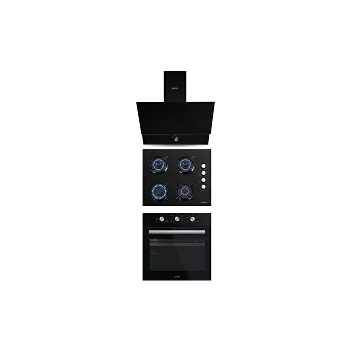 Siyah Ankastre Camlı Set Yeni Model