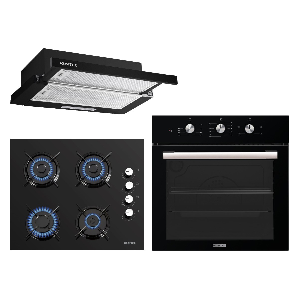 Kumtel Siyah Aspiratörlü Kristal Ankastre Set (B66 – SF2 (MT) + KO-40TAHDF + DS6-905S)