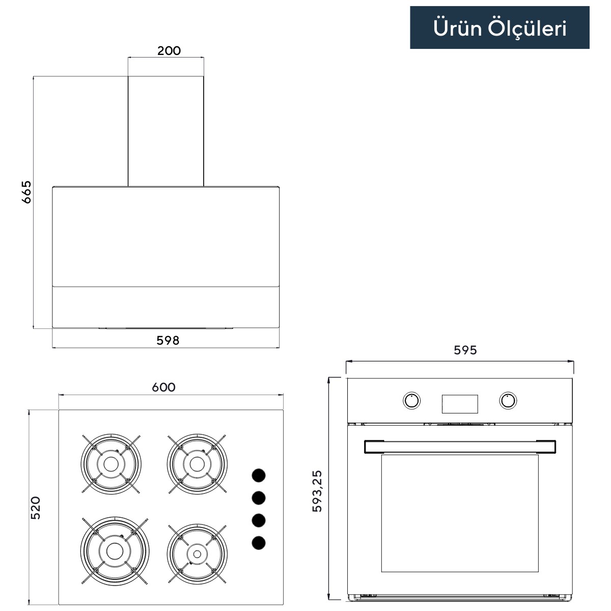 Kumtel Siyah Cam Dijital / Dokunmatik Ankastre Set – 8 Programlı (KO-40 TAHDF Ocak B66 – Sf2 Ddt Fırın DA6-835 Davlumbaz)