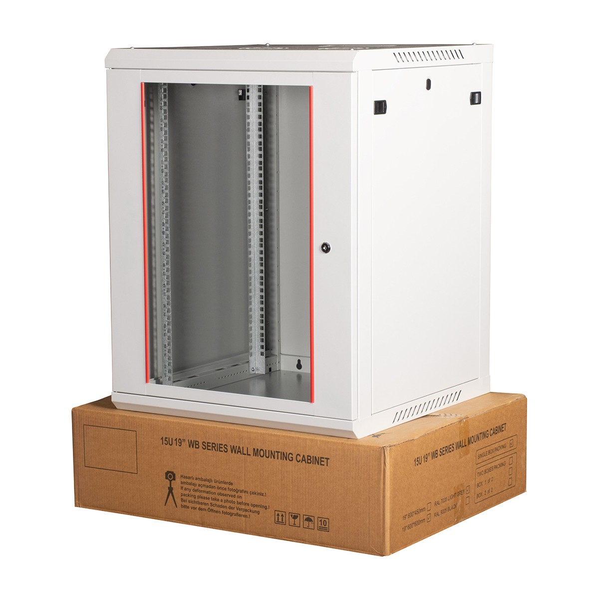 Lande – 15U 19″ Duvar Tipi Rack Kabinet – Genişlik: 600 mm | Derinlik: 600 mm – Açık Gri (Demonte)