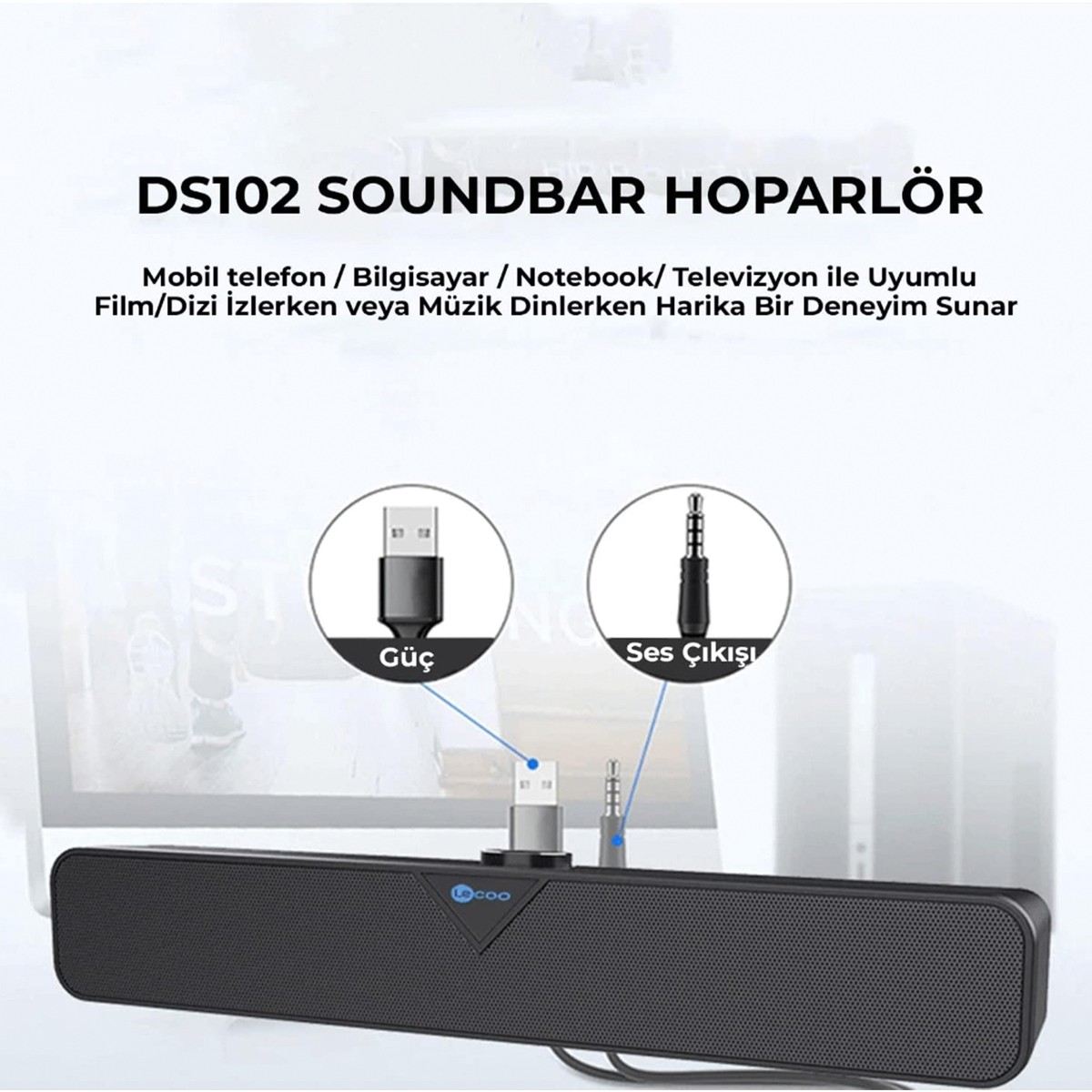 Lecoo DS102 Kablolu Stereo 6W Soundbar, üstün ses kalitesi, taşınabilirlik ve kablolu bağlantı özellikleriyle müzik deneyiminizi bir üst seviyeye taşır. Bu soundbar ile her an müziğin tadını çıkarabilirsiniz.