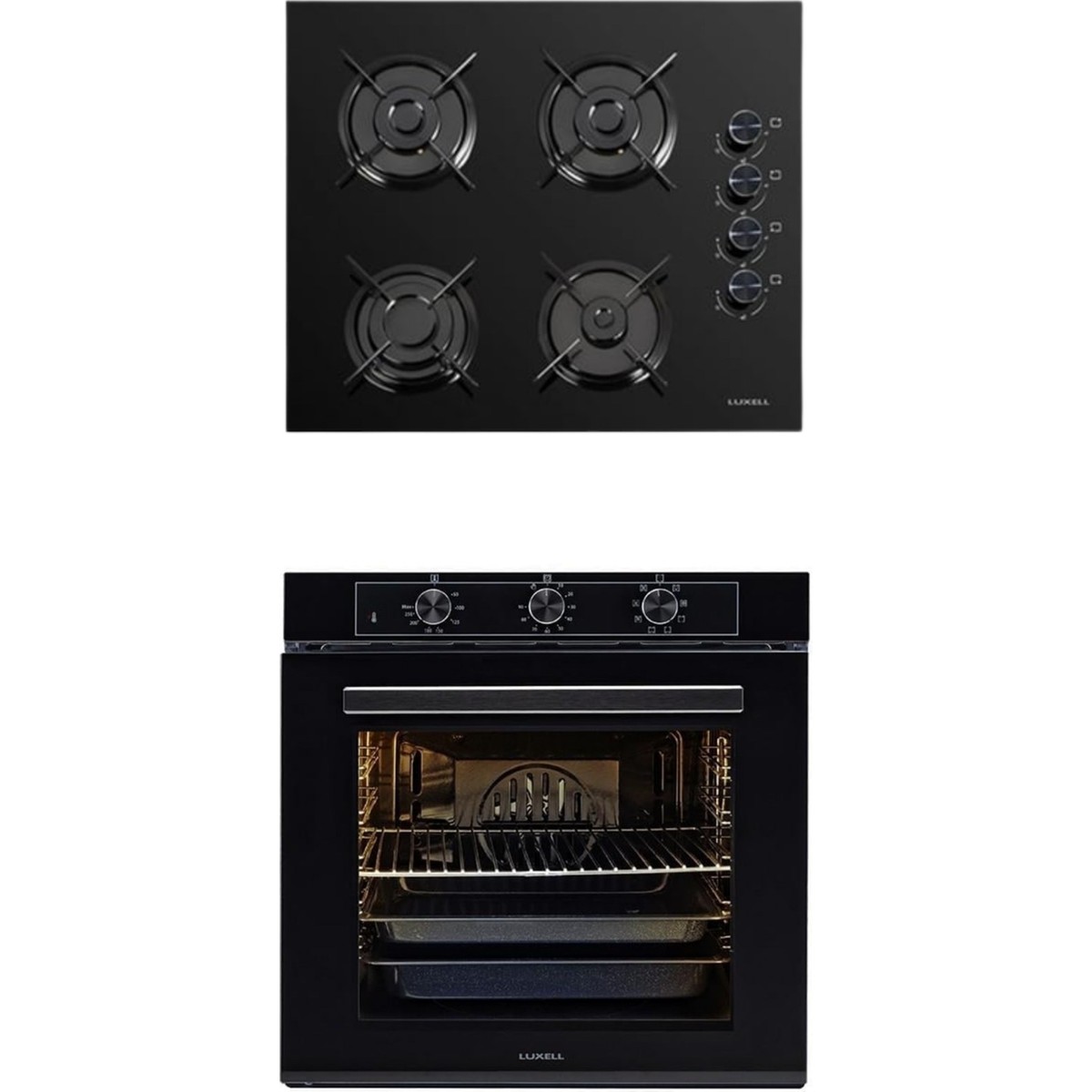 Luxell 2 Li Siyah Cam Set (Ocak-Fırın)