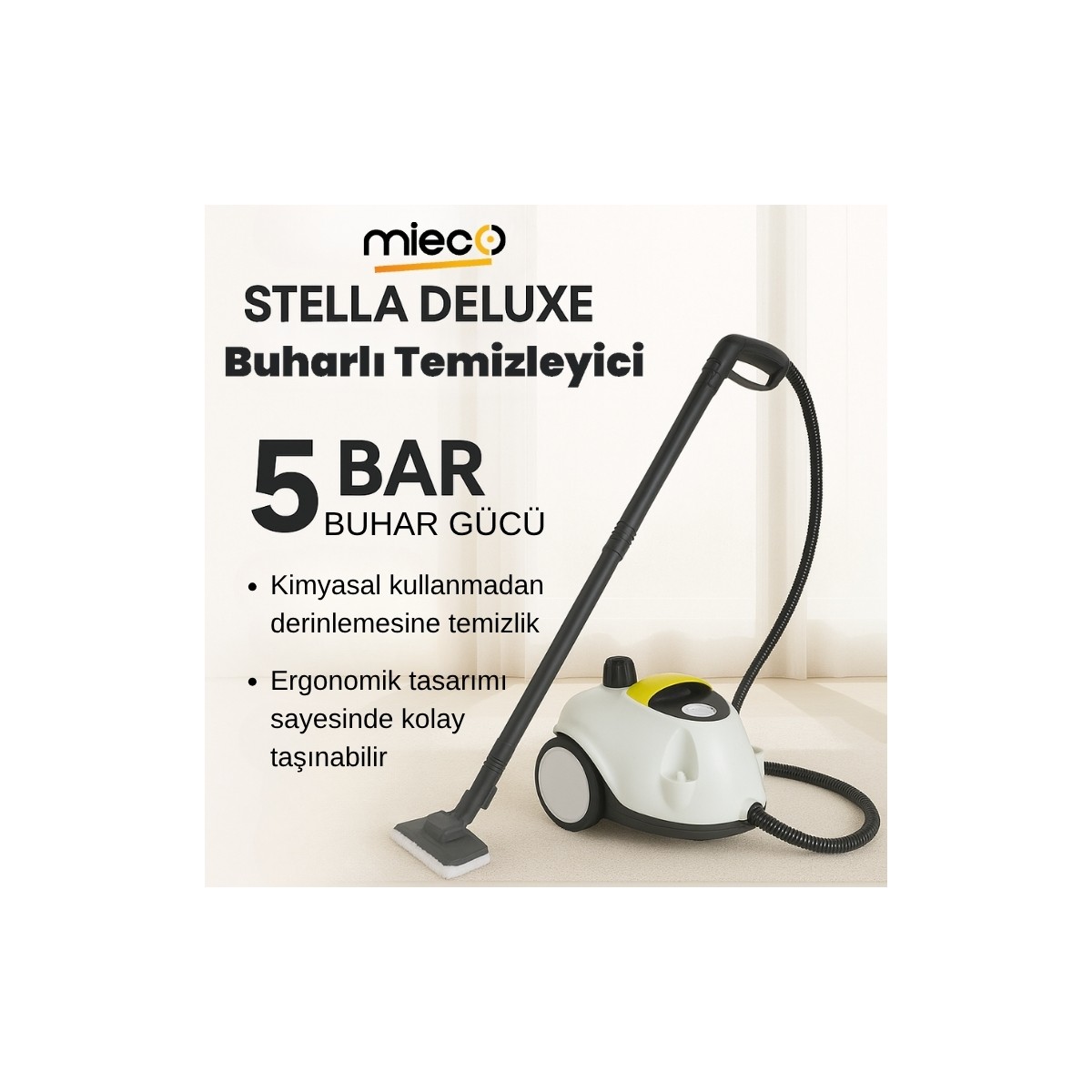 Mieco Stella Deluxe 5 Bar/ 2100W / Çok Fonksiyonlu 25 Parça Buharlı Temizleme Makinası – Beyaz