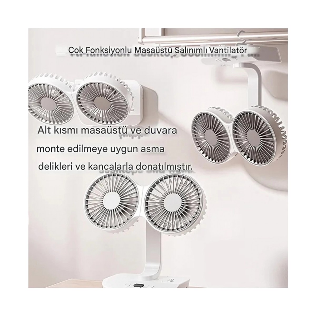 【2 Kafalı Çok İşlevli Vantilatör】: Bu masa vantilatörü,iki kişinin aynı anda keyif almasını sağlayan 2 kafalı tasarıma sahiptir.